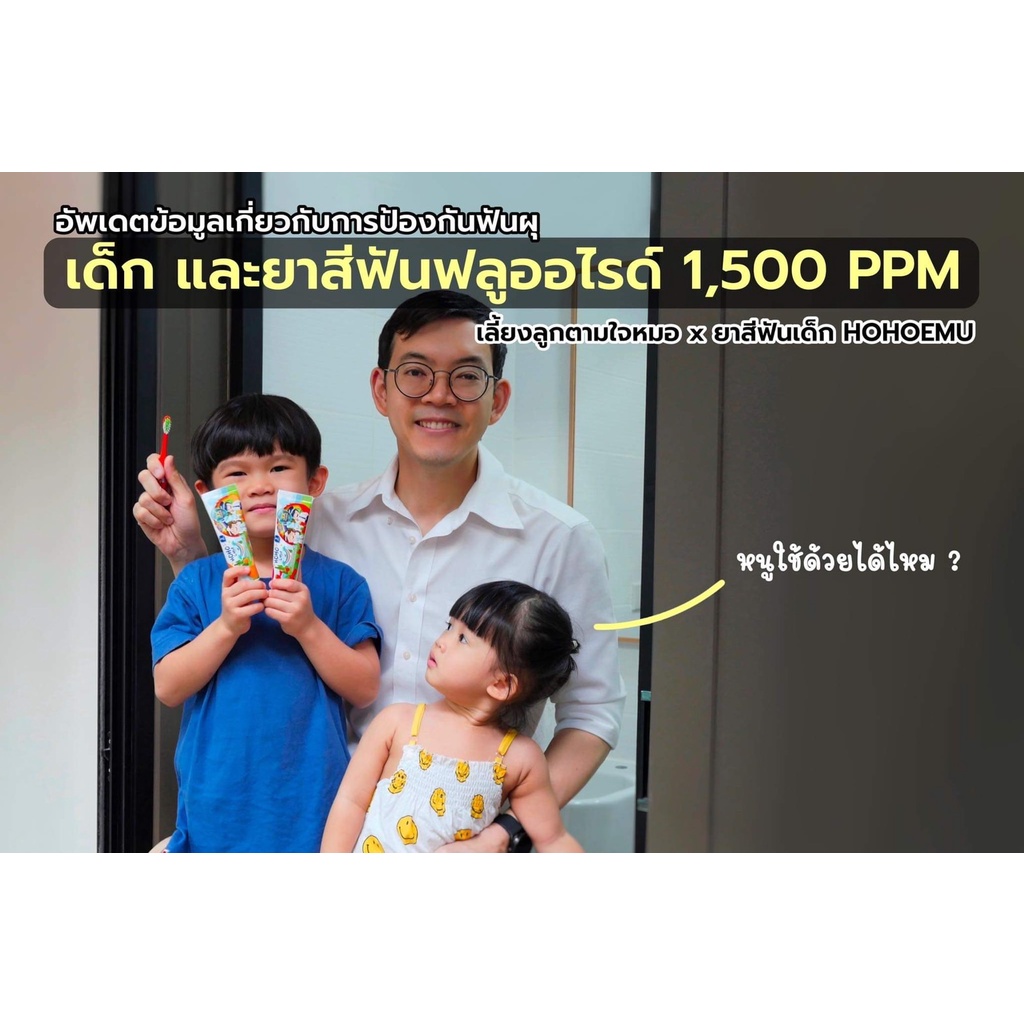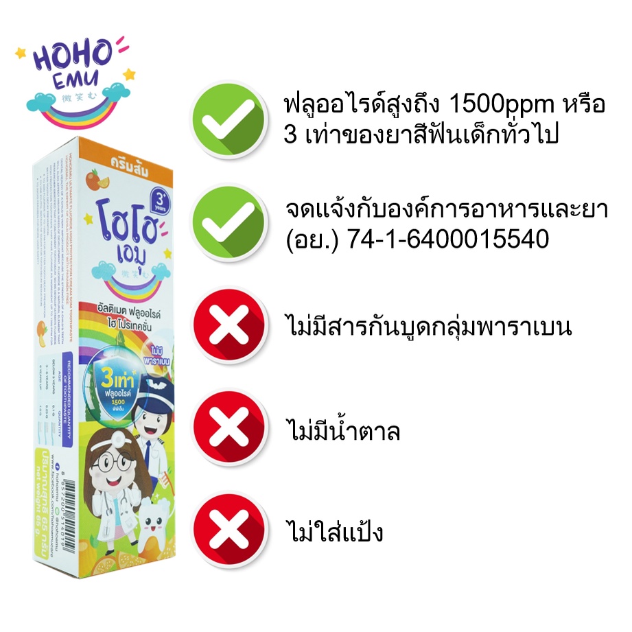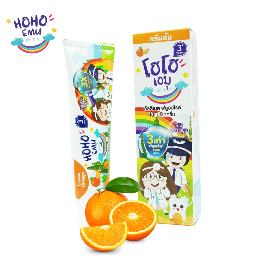 HOHOEMU โฮโฮเอมุ ยาสีฟันเด็ก ฟลูออไรด์ 1500ppm ขนาด 65g รสส้ม แพ็ค 4 หลอด