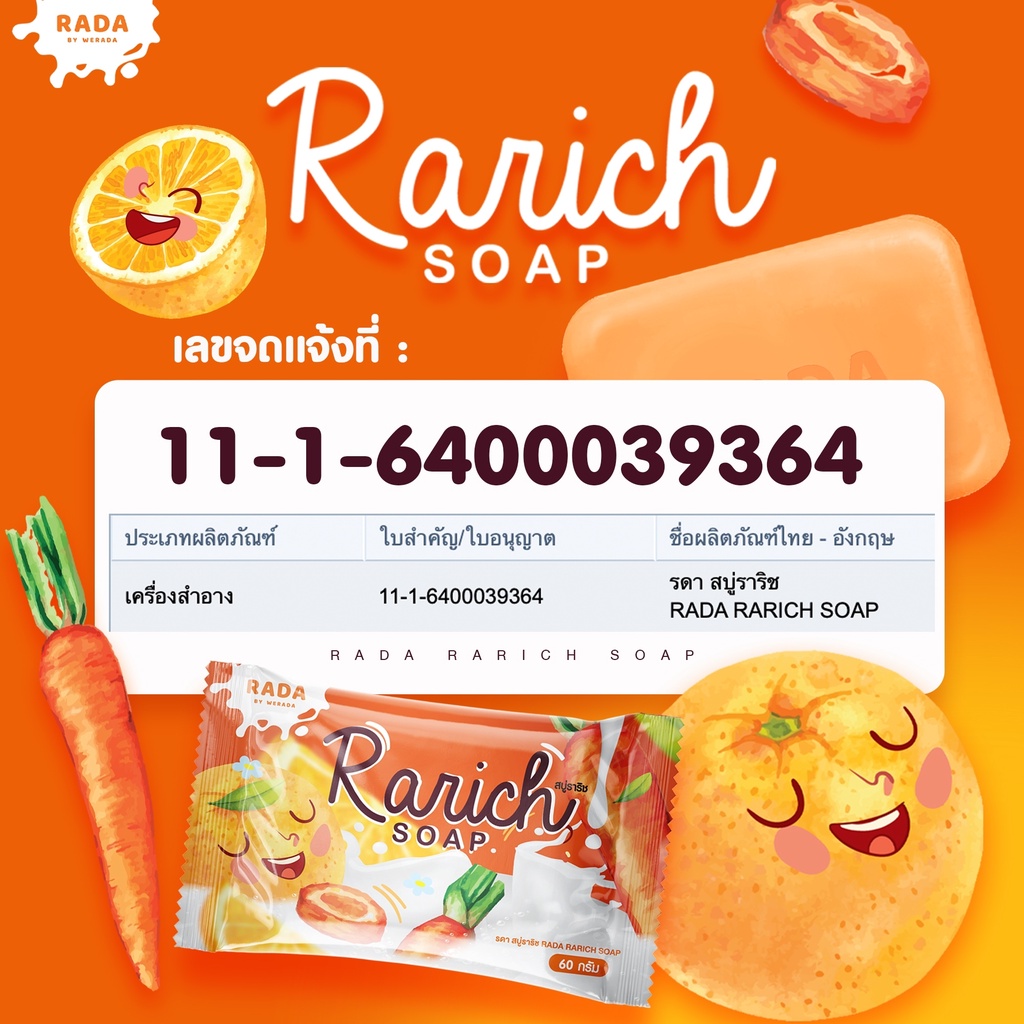 สบู่ราริช แบรนด์รดา สบู่ระเบิดขี้ไคล Rarich Soap (สบู่ราริช) ขาวไว สิวหาย สบู่แครอทส้ม
