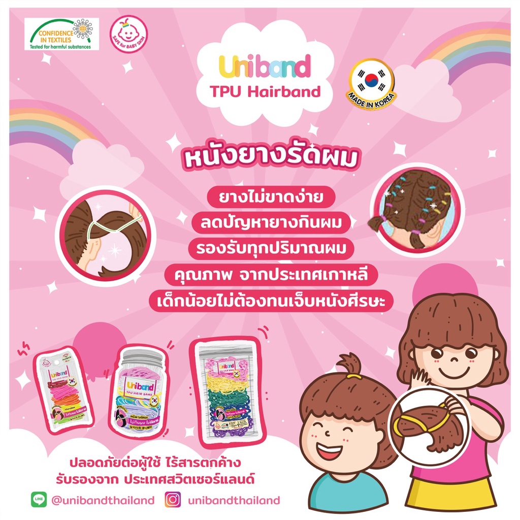 Uniband หนังยางรัดผม ไม่กินผม ไม่ดีดขาดง่าย TPU Widy Size : Pastel