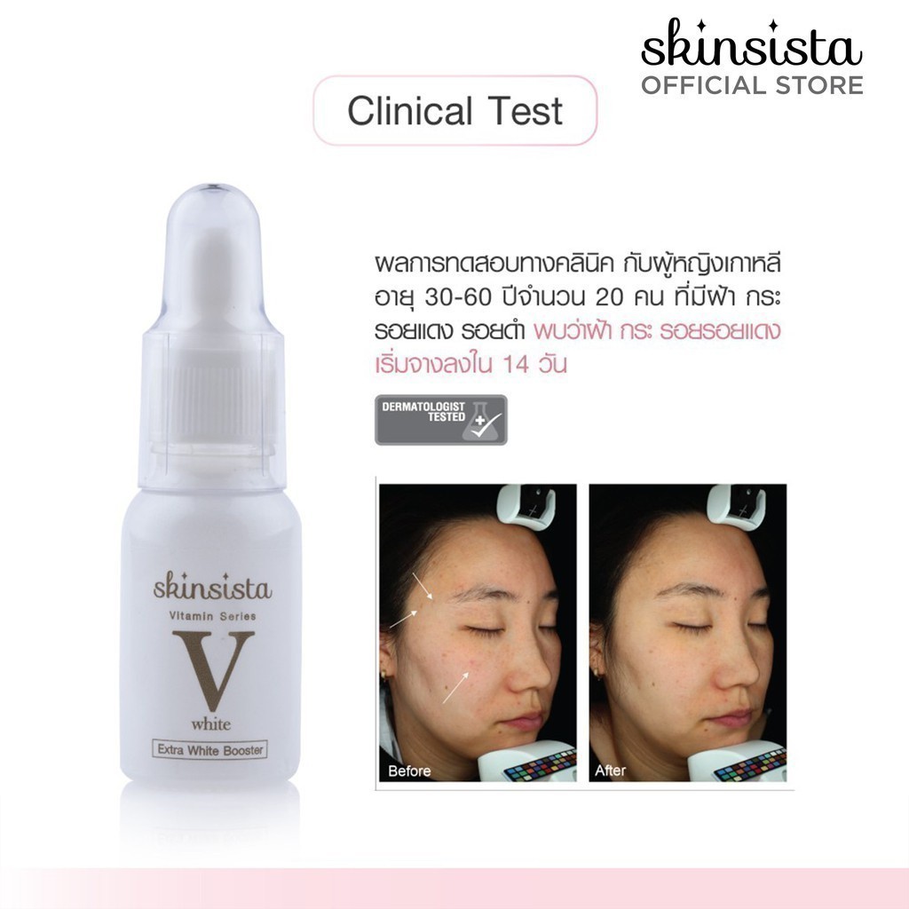 Skinsista บูสเตอร์ เซรั่ม ลดฝ้ากระ ผิวกระจ่างใส V White 15ml.