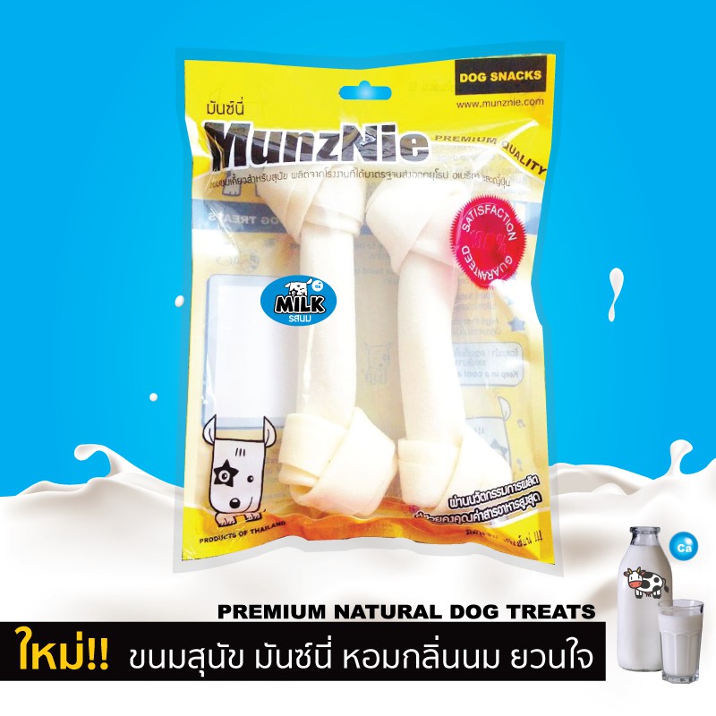 MUNZNIE ขนมสุนัขมันซ์นี่ กระดูกผูก 6 นิ้ว รสนม/ 2 ชิ้น||MS004