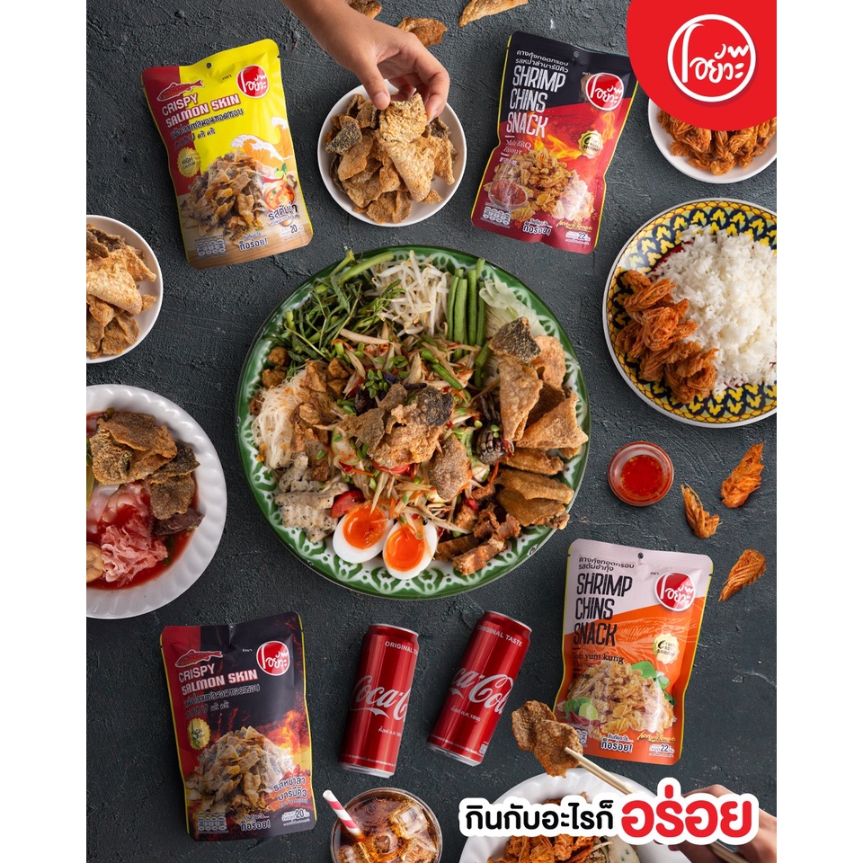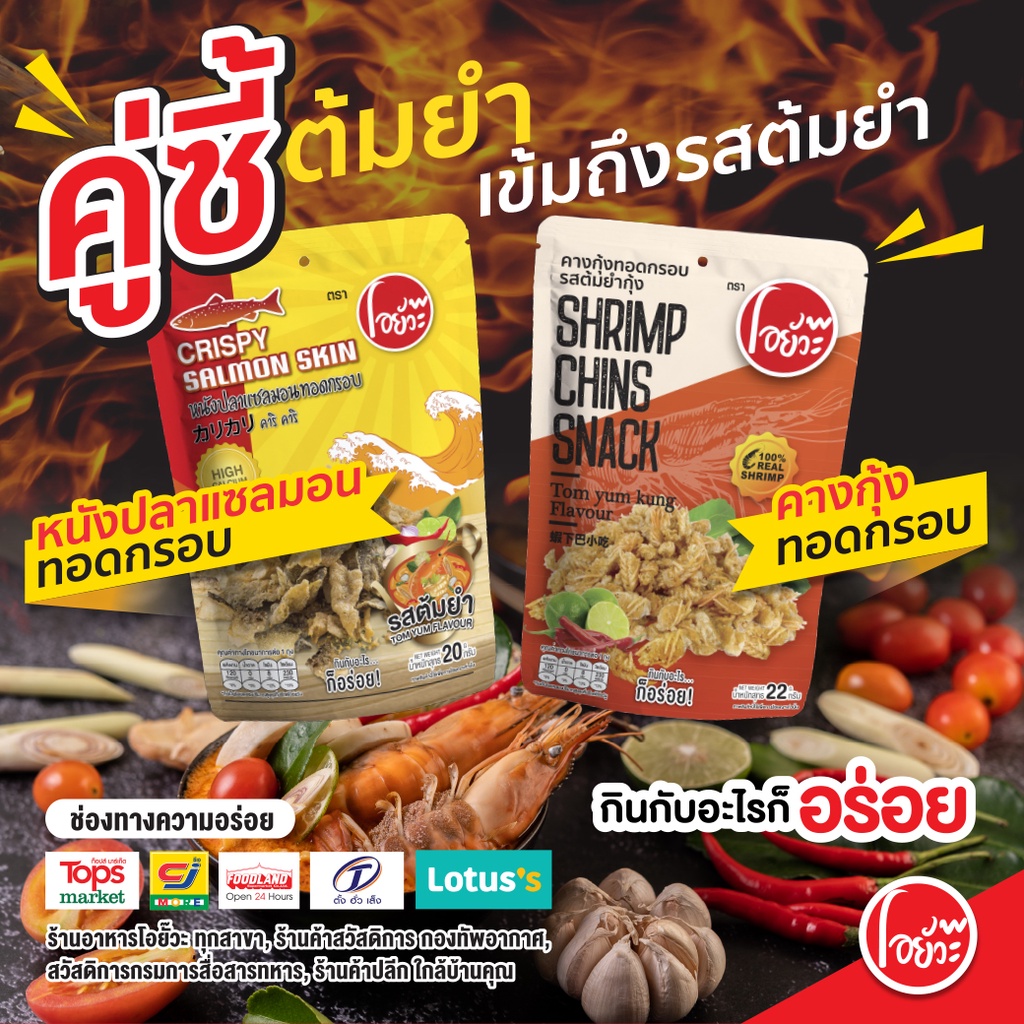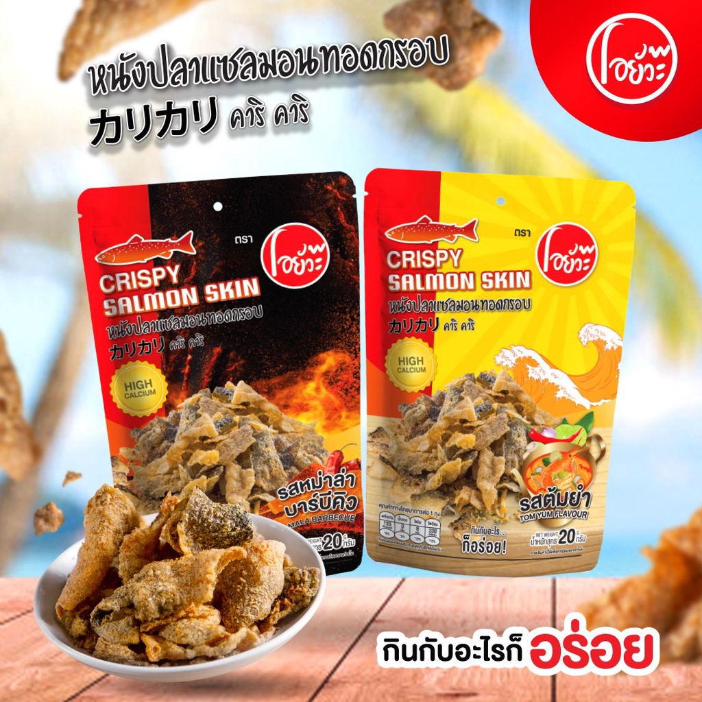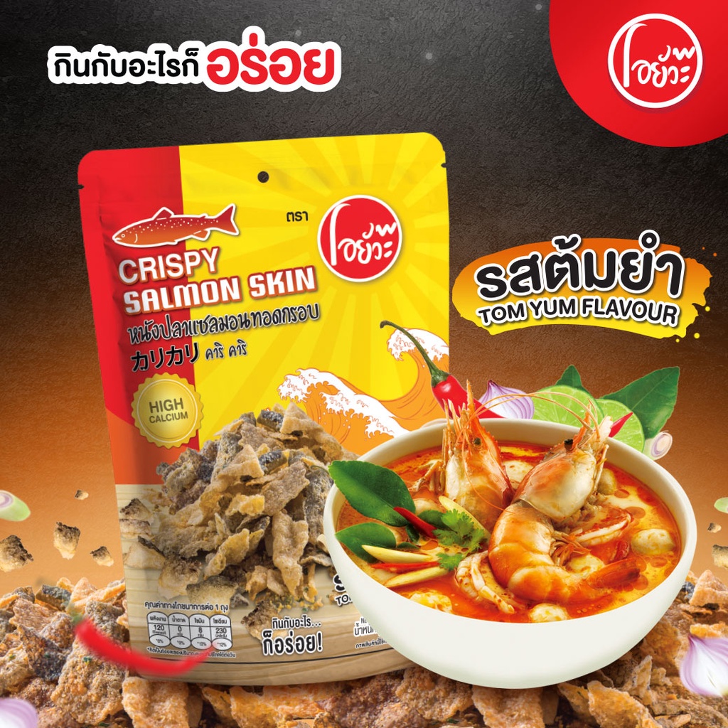 หนังปลา แซลมอนทอดกรอบ รสต้มยำกุ้ง จำหน่ายแบบยกลัง (36 ซอง/ลัง) Crispy Salmon Skin Tom Yum Flav.