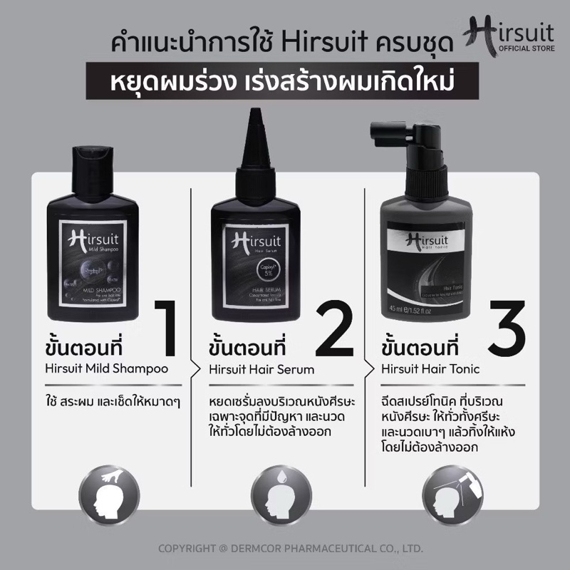 Hirsuit Mild Shampoo / Serum / Tonic บำรุงเส้นผม หนังศีรษะ เฮอร์ซูท โทนิค เซรั่ม สเปรย์ แฮร์สเปรย์