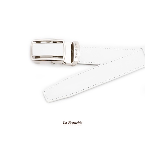 𝗟𝗮 𝗙𝗿𝗮𝗻𝗰𝗵𝗲 - 𝗔𝘂𝘁𝗼𝗺𝗮𝘁𝗶𝗰 𝗕𝗲𝗹𝘁 เข็มขัดหนังวัวแท้เรียบ Nappa สีขาว พร้อมหัวเข็มขัดออโต้ล็อค #2AL0117