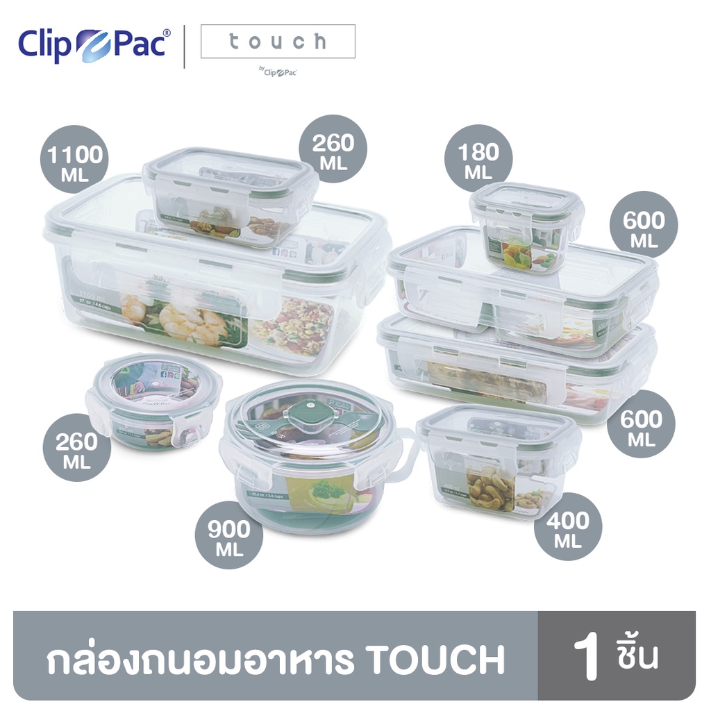 Clippac Touch คลิปแพ็คทัช เซตกล่องถนอมอาหาร ทรงกลม ทรงสี่เหลี่ยม