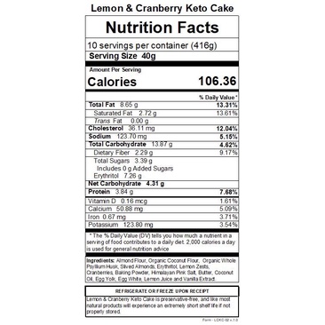 90LC เค้กคีโต เลม่อนและแครนเบอรี่ Lemon & Cranberry Keto Cake