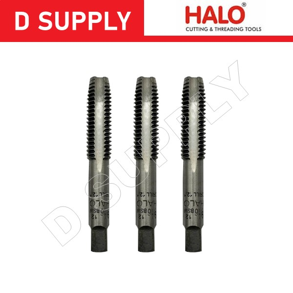HALO ดอกต๊าปเกลียว BSW 3 ตัวชุด มีหลายขนาด 1/8"-3/8" (Hand Taps) ลดราคา กล่องเลอะน้ำมัน