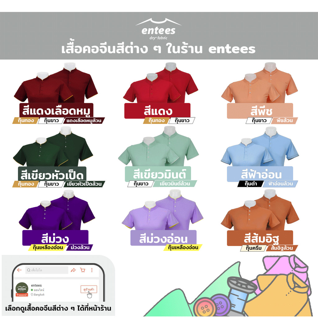 เสื้อคอจีน Micro Plus สีแดง