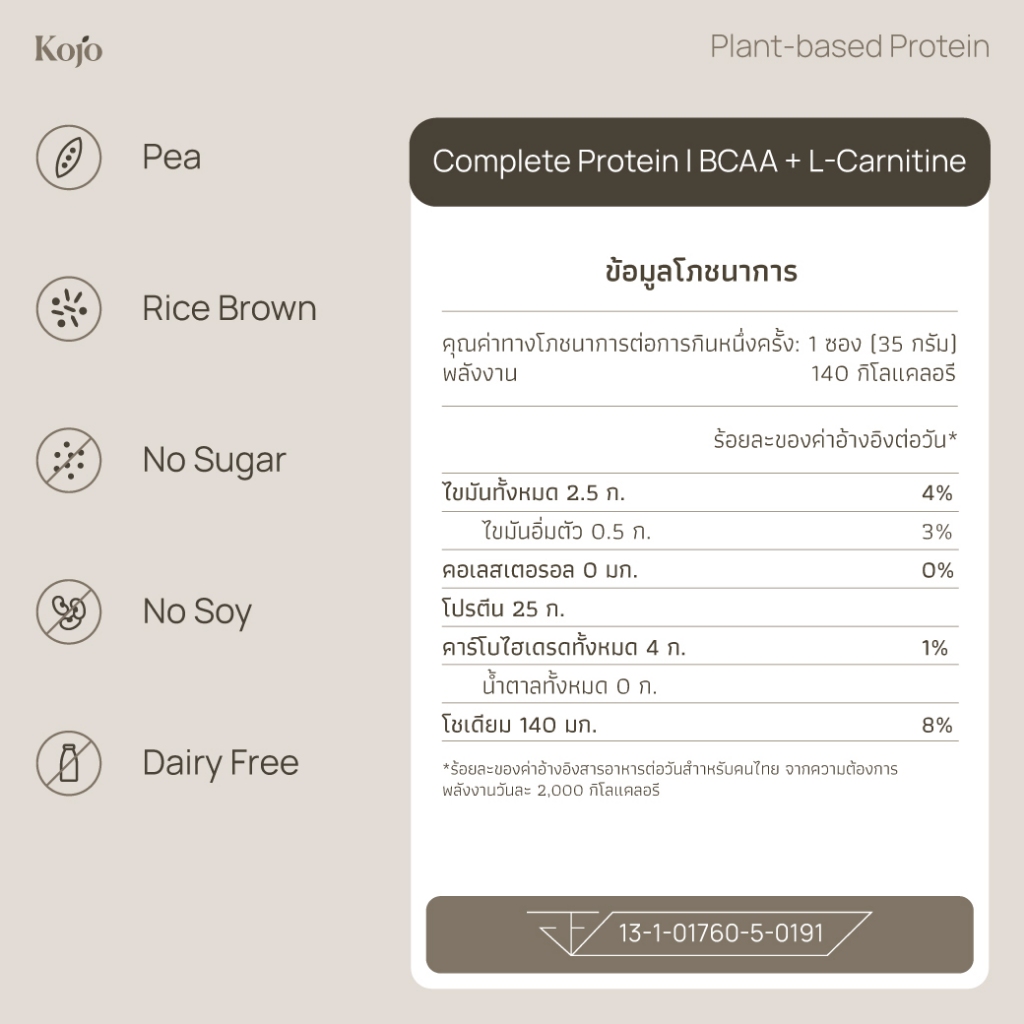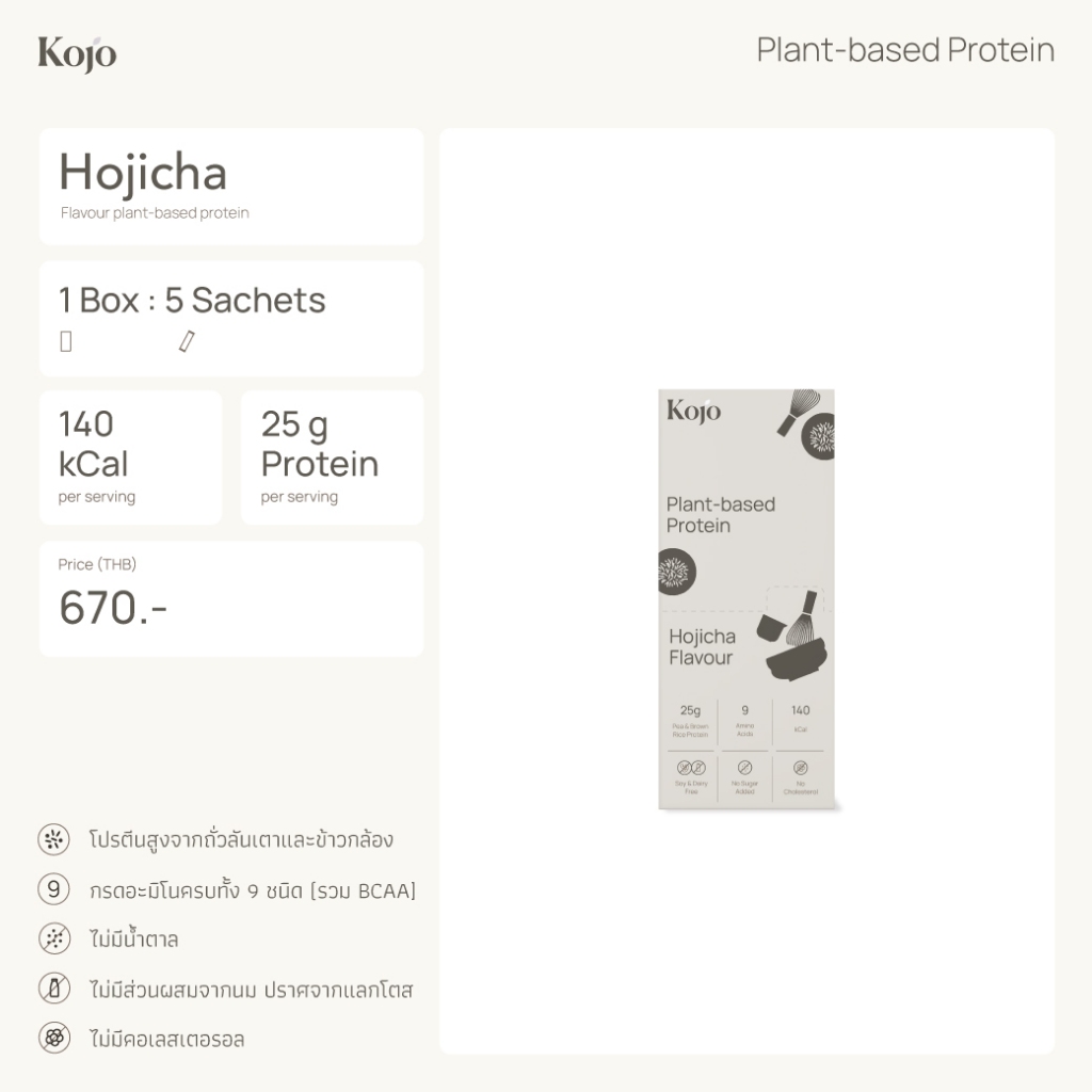 Try Me Set Hojicha: Kojo Plant Based Protein Hojicha Flavour โปรตีนจากพืช รสโฮจิฉะ 5 ซอง