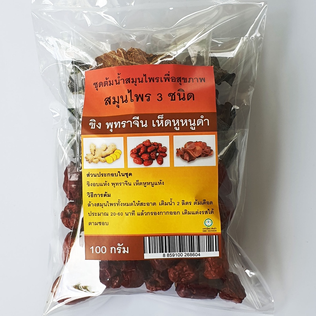 ชุดต้ม สมุนไพร 3ชนิด ขิง พุทราจีน เห็ดหูหนูดำ สมุนไพรสามชนิด 100 กรัม