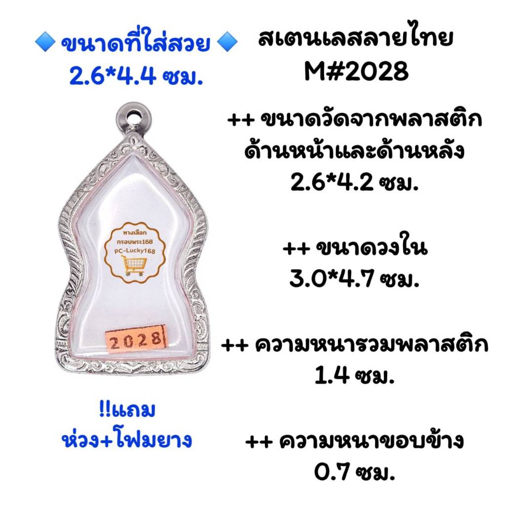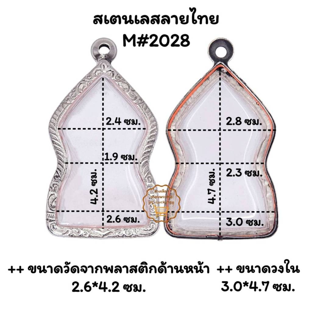 M#2028 ตลับพระ/กรอบพระสเตนเลสลายไทย เหรียญเข้ารูปชินราชใบเสมาหรือใกล้เคียง < ขนาดใส่สวย 1.8x3.9 ซม.>
