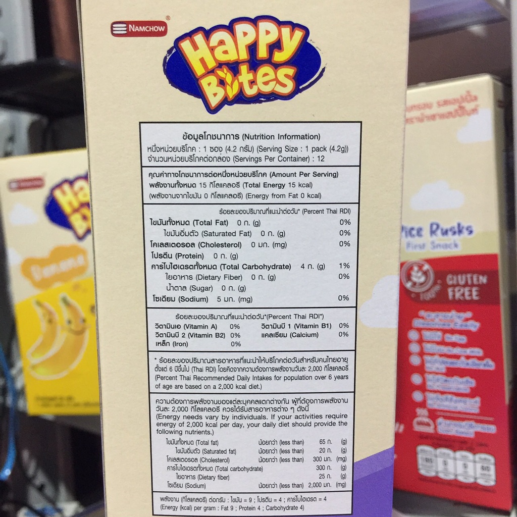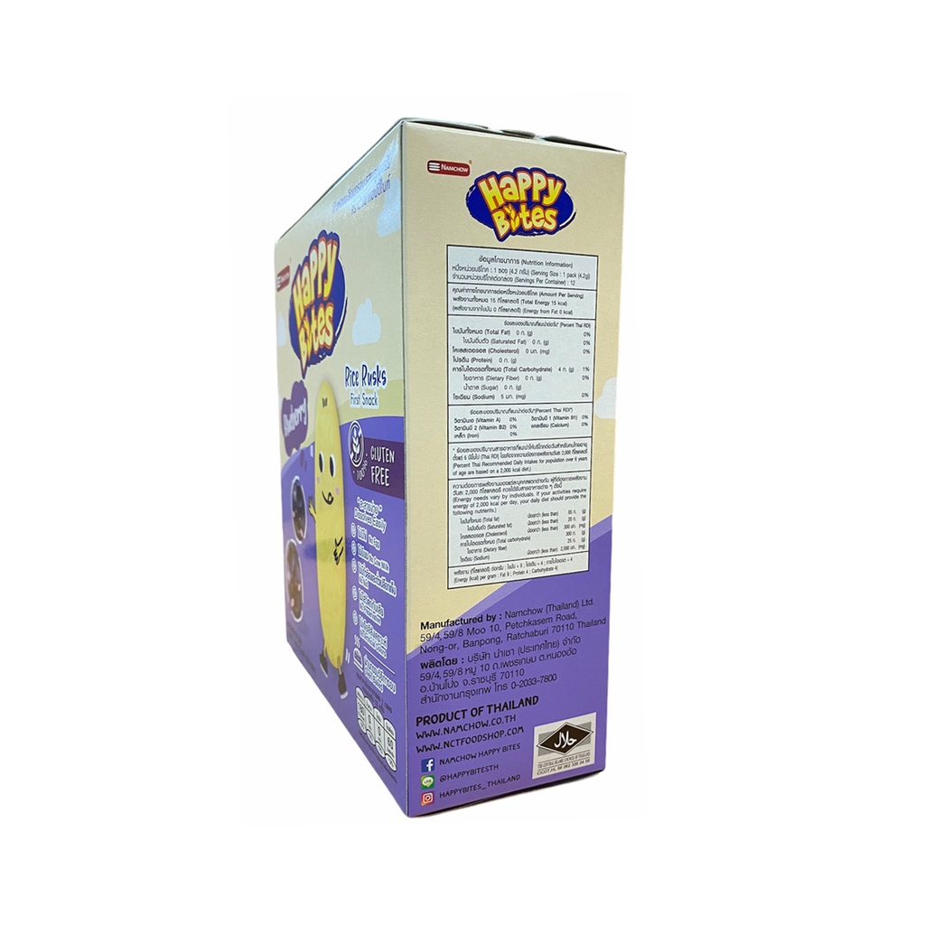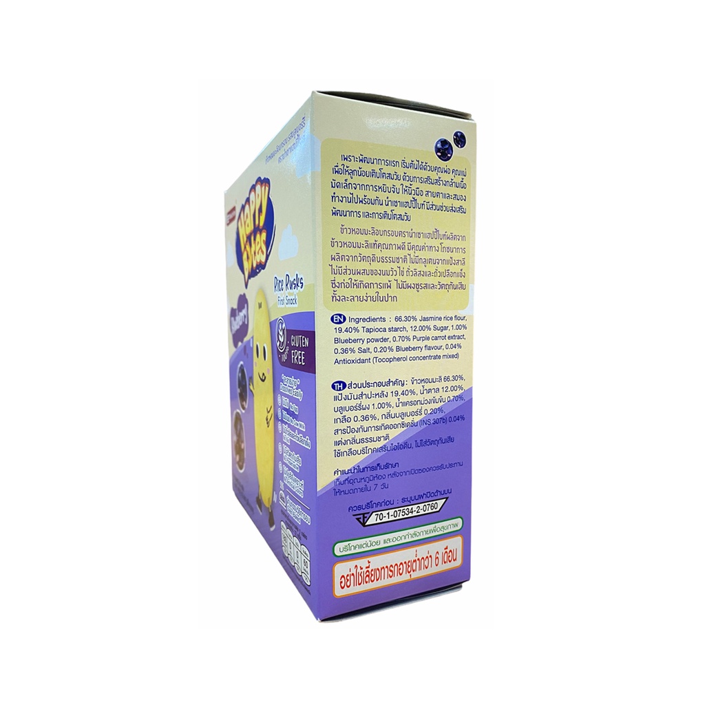 Happy Bites ขนมข้าวอบกรอบสำหรับเด็ก รสบลูเบอรี่ ขนาด 50 กรัม (Happy02) Rice Rusks first snack Blueberry