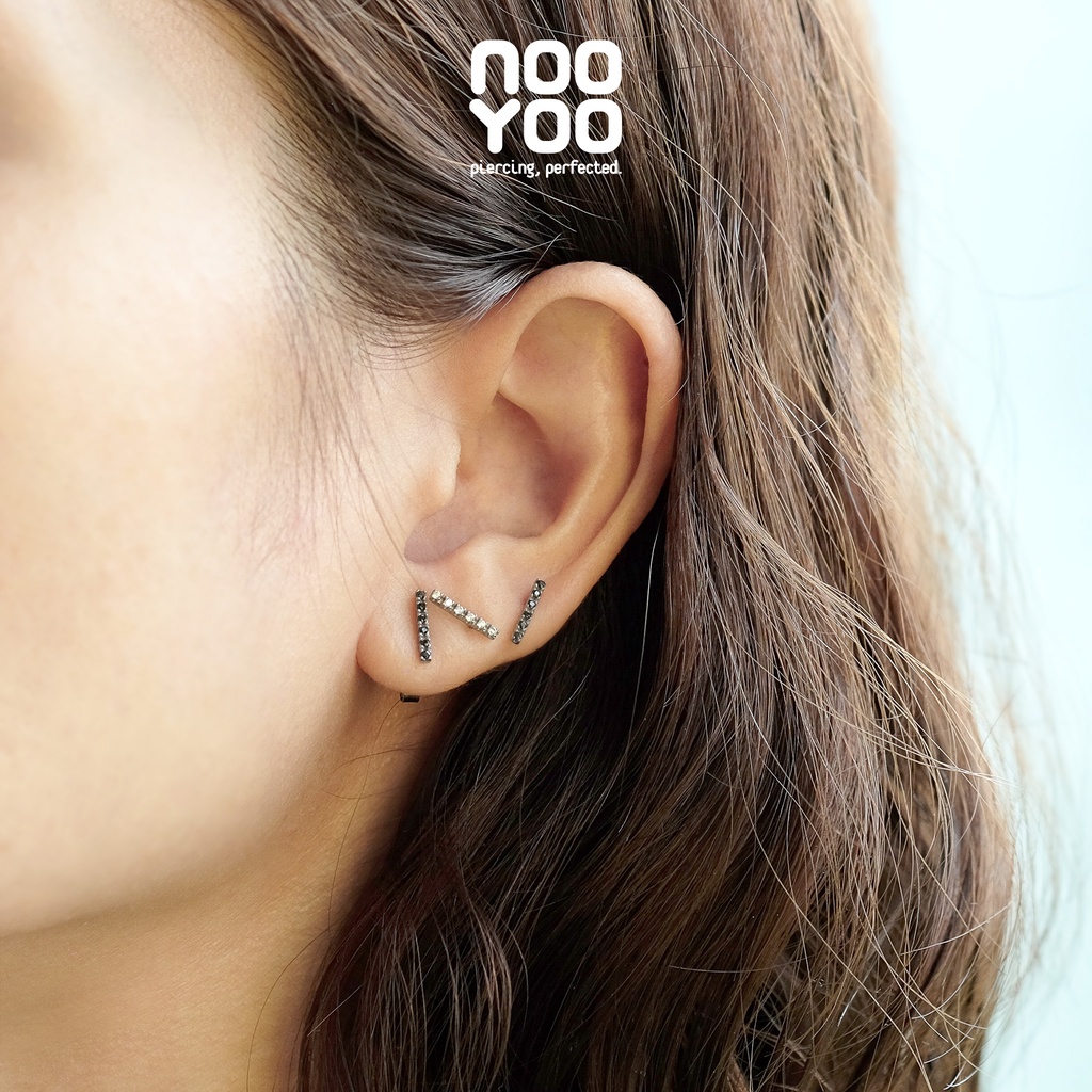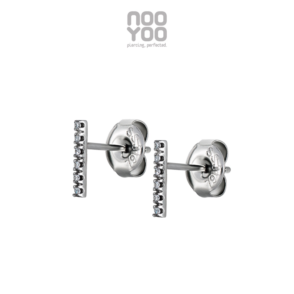 NooYoo ต่างหูสำหรับผิวแพ้ง่าย รุ่น Bar Cubic Zirconia (ขาว/ดำ)