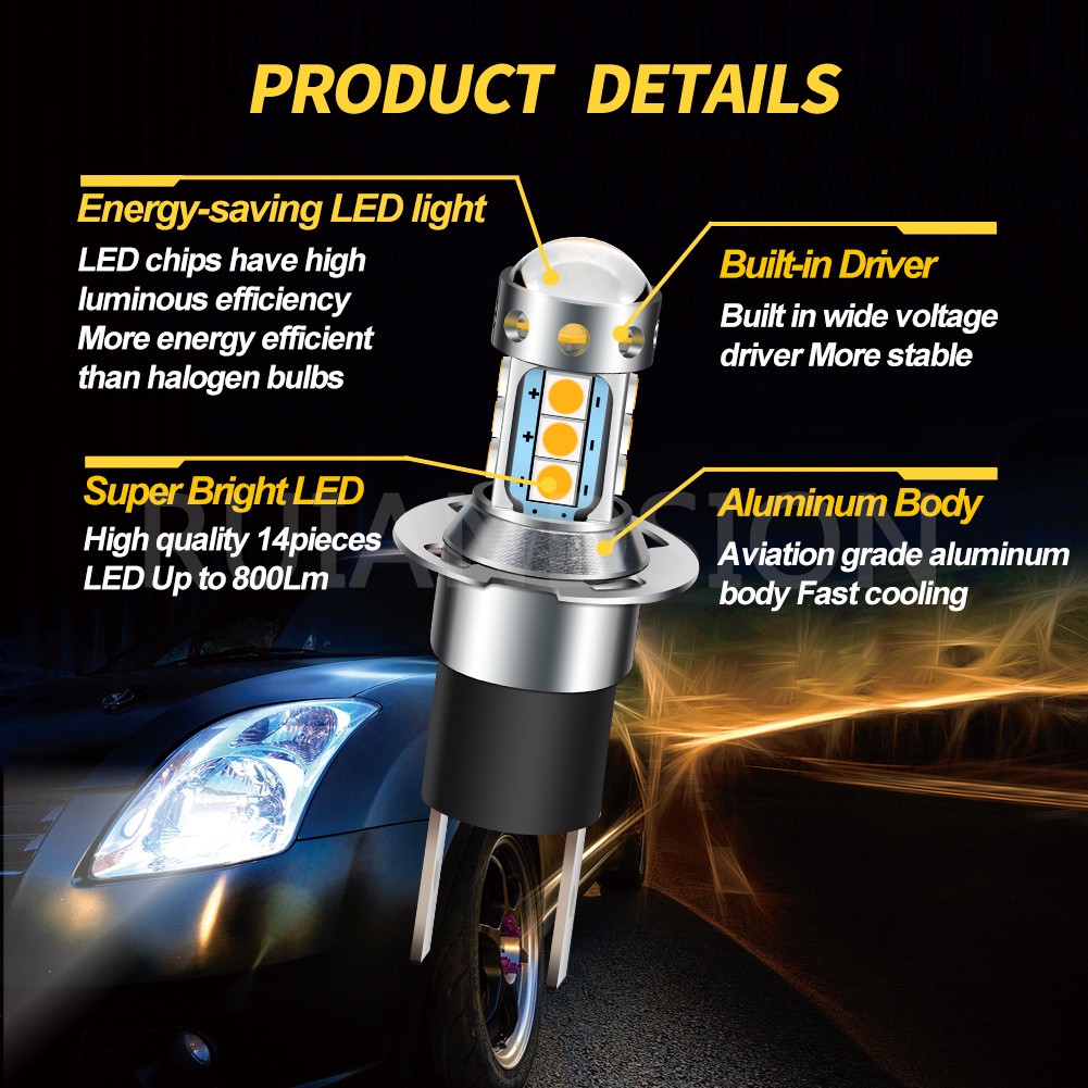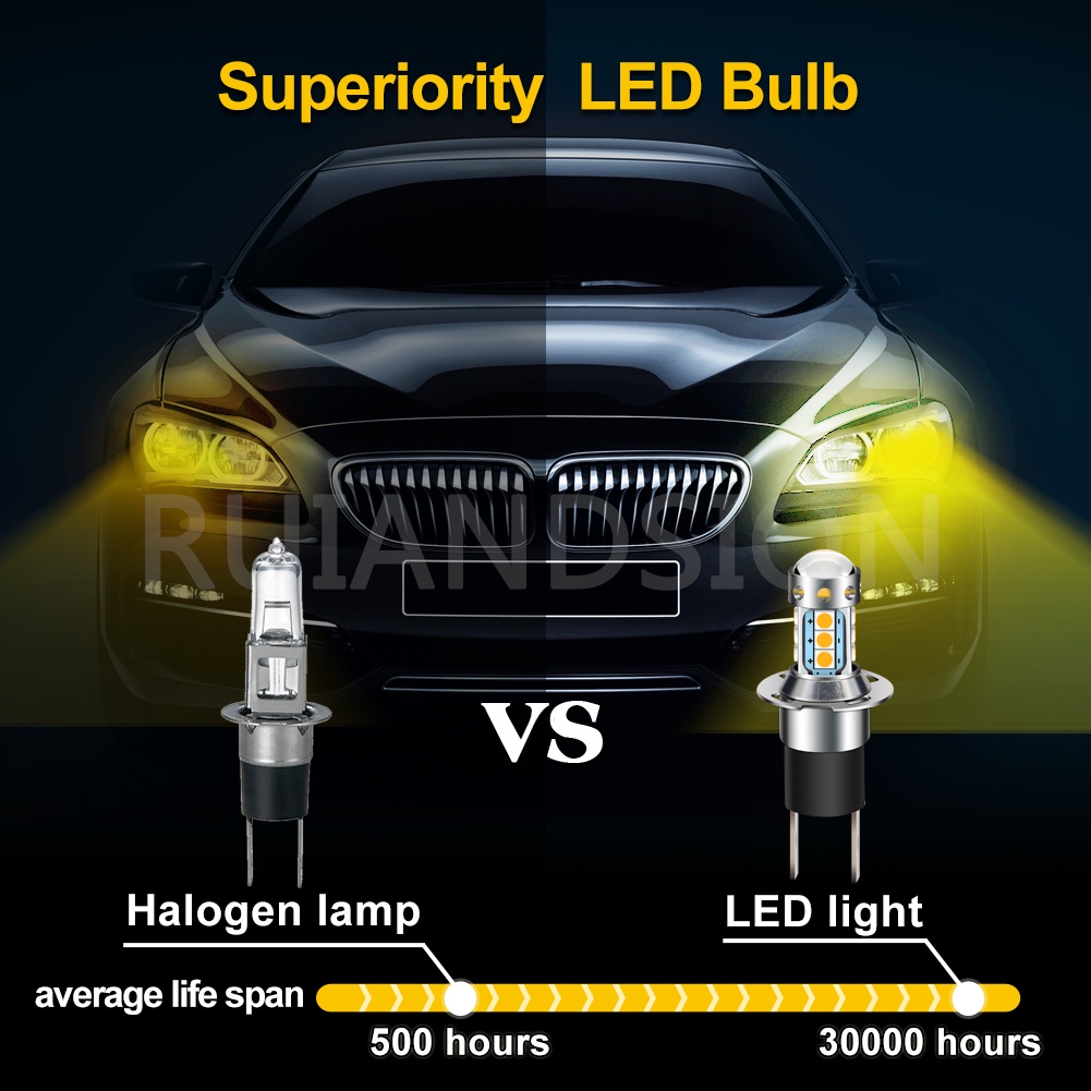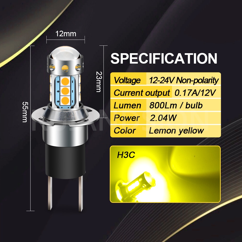 Ruiandsion หลอดไฟตัดหมอก H3C LED 2W 800LM 10-30V ประหยัดพลังงาน สีขาว เหลือง สําหรับรถยนต์ 1 ชิ้น