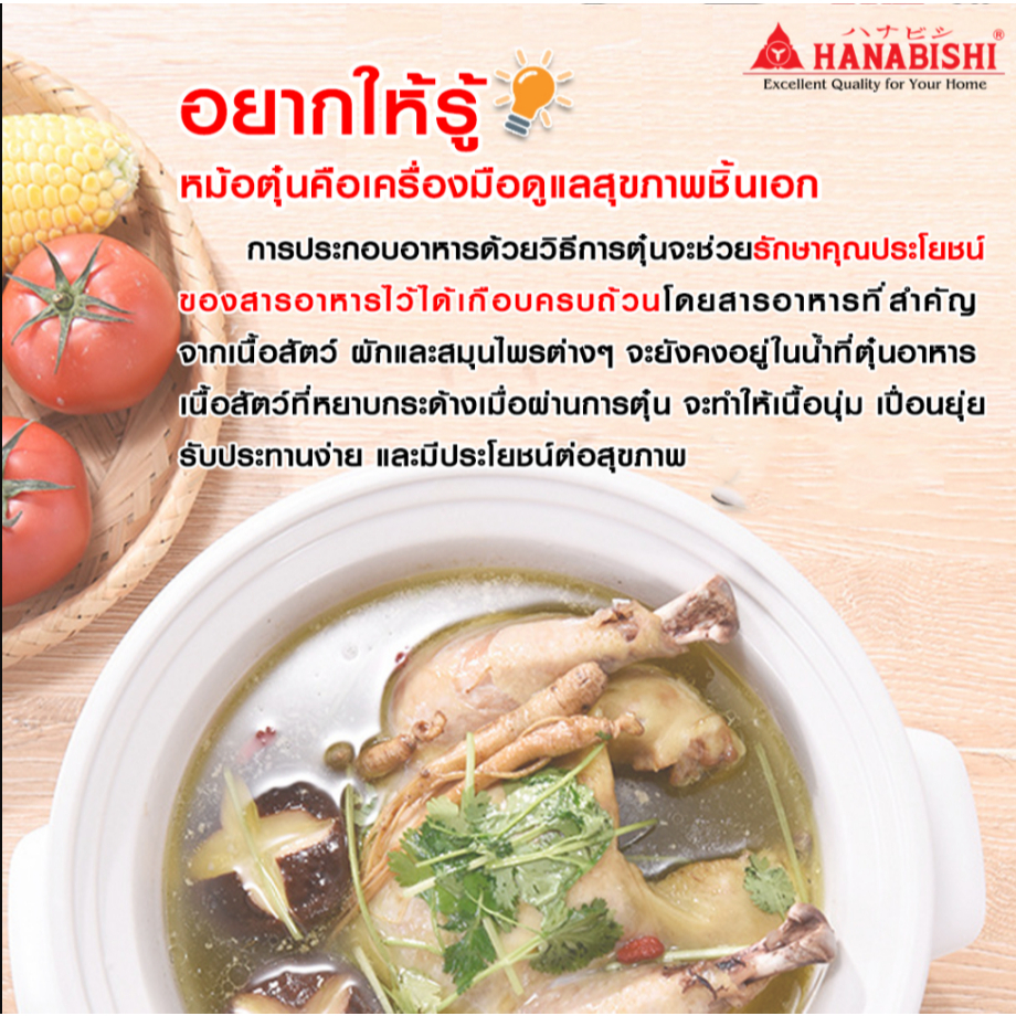 HANABISHI หม้อตุ๋น รุ่น HSC-245 ความจุ 4 ลิตร สีขาว กำลังไฟ 280W หม้อตุ๋นเซรามิค หม้อตุ๋นไฟฟ้า หม้อตุ๋น
