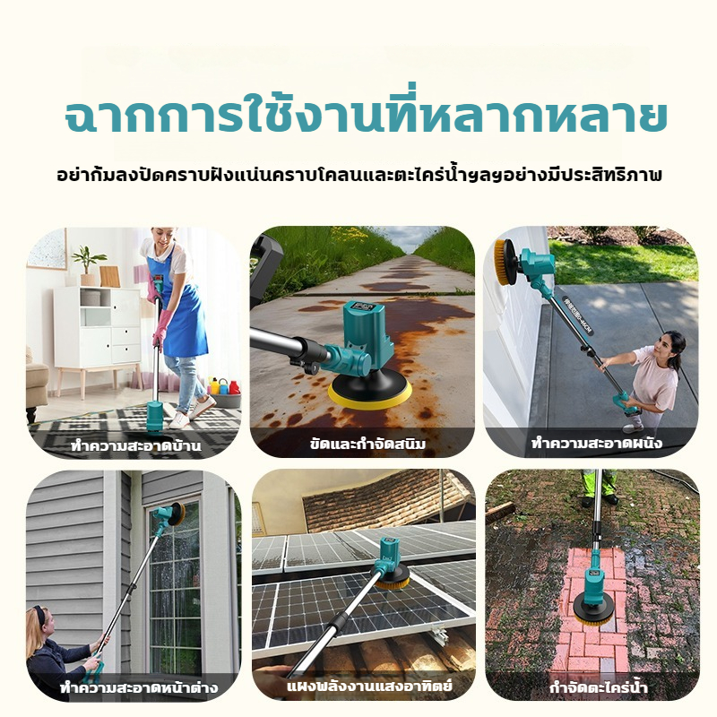 6in1 เครื่องขัด แปรงขัดไฟฟ้าไร้สาย 90-120ซม ไร้สายประยืดได้ แปรงขัดห้องน้ำไฟฟ้าไร้สาย ขัดห้องน้ำ ผนังพื้น แปรงขัดพื้น