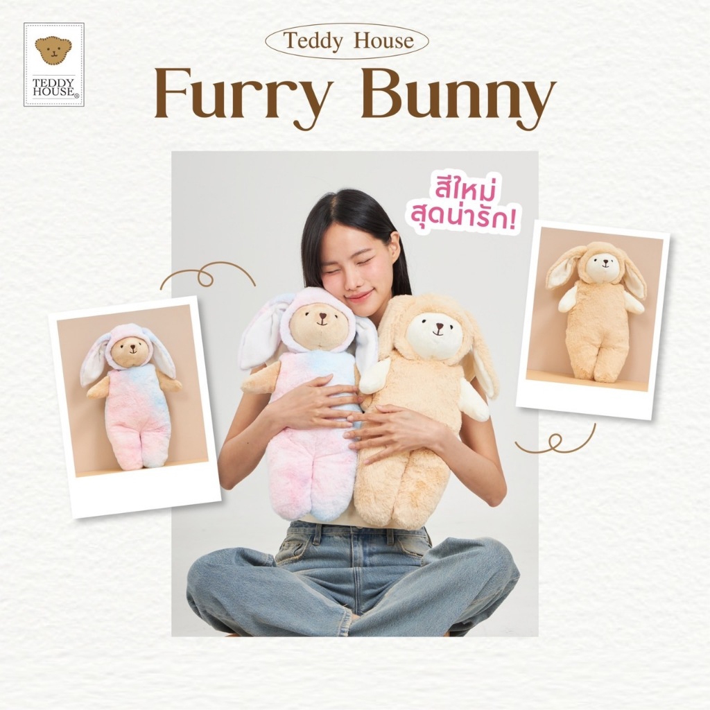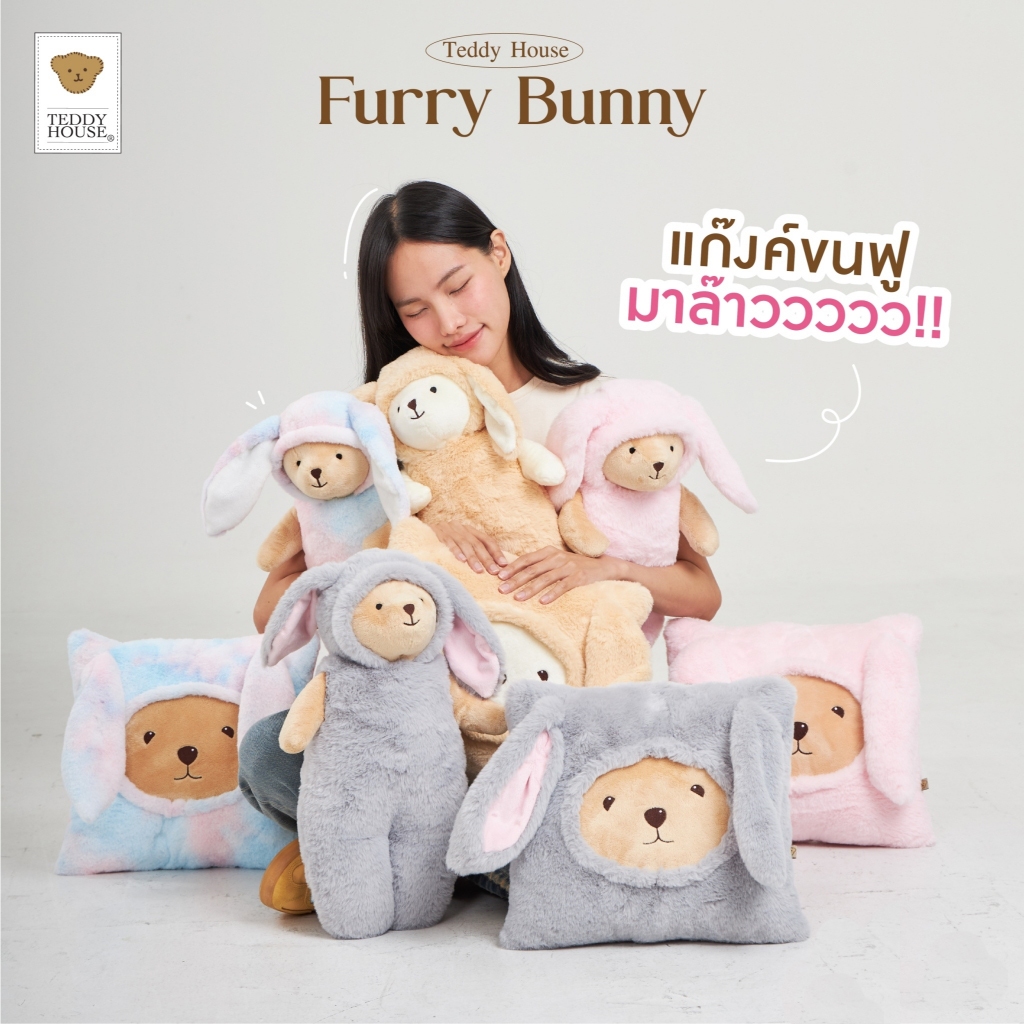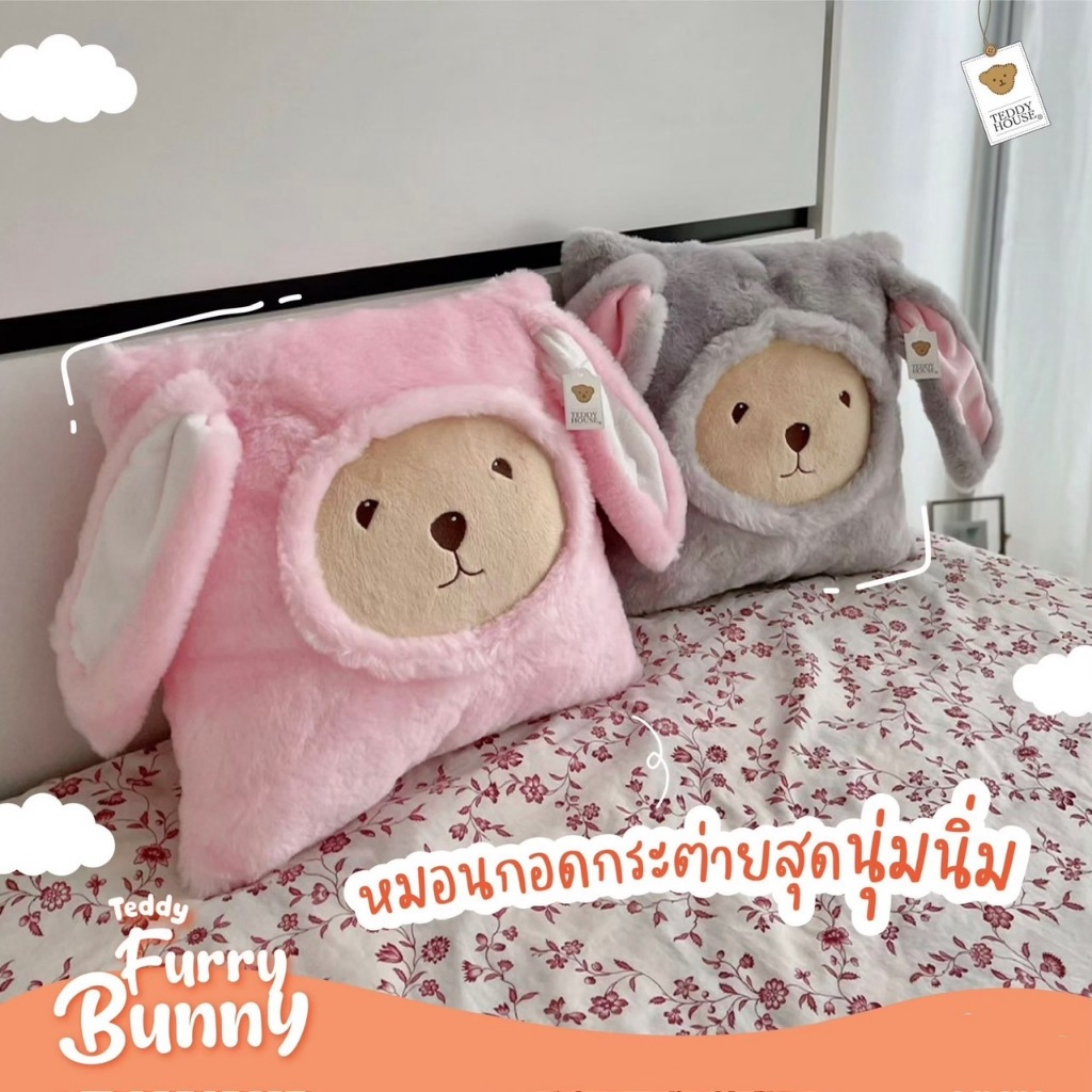 Teddy House : Furry Bunny หมอนกระต่ายสี่เหลี่ยม หมอนข้าง หนุนหลัง ผ้านุ่มขนfluffy ตุ๊กตา Hot Item