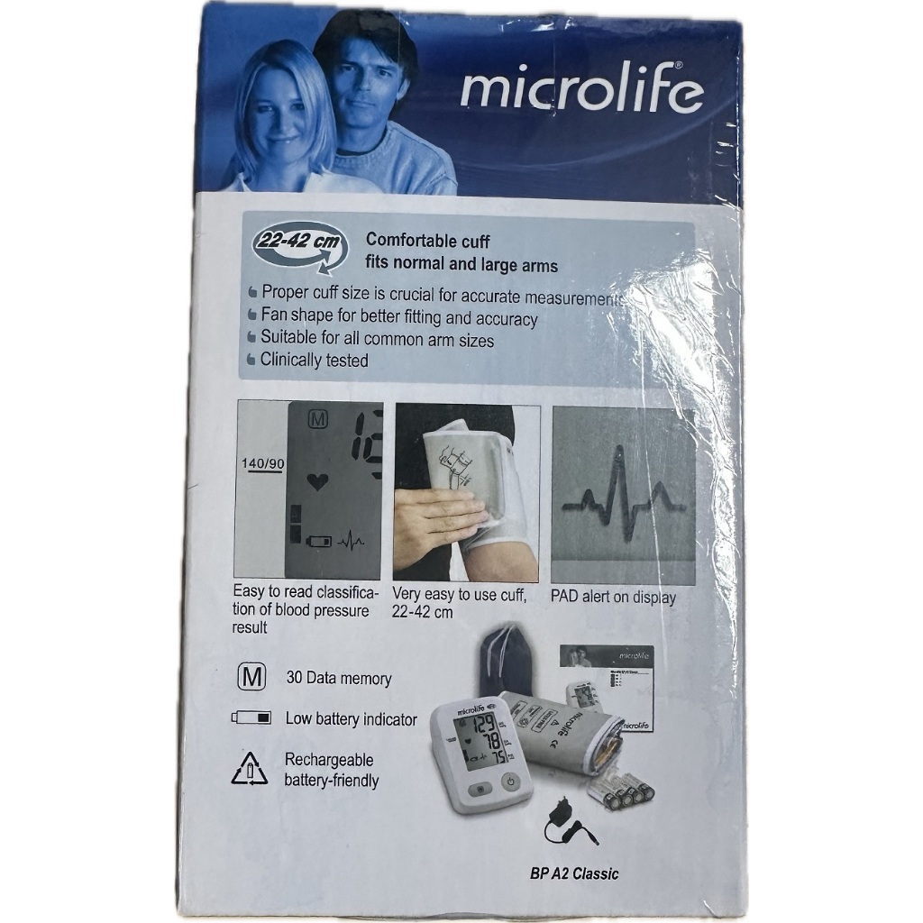 Microlife เครื่องวัดความดันโลหิต รุ่น A2 Classic แถมถ่าน+ Adapter (รับประกันศูนย์ 5 ปี)