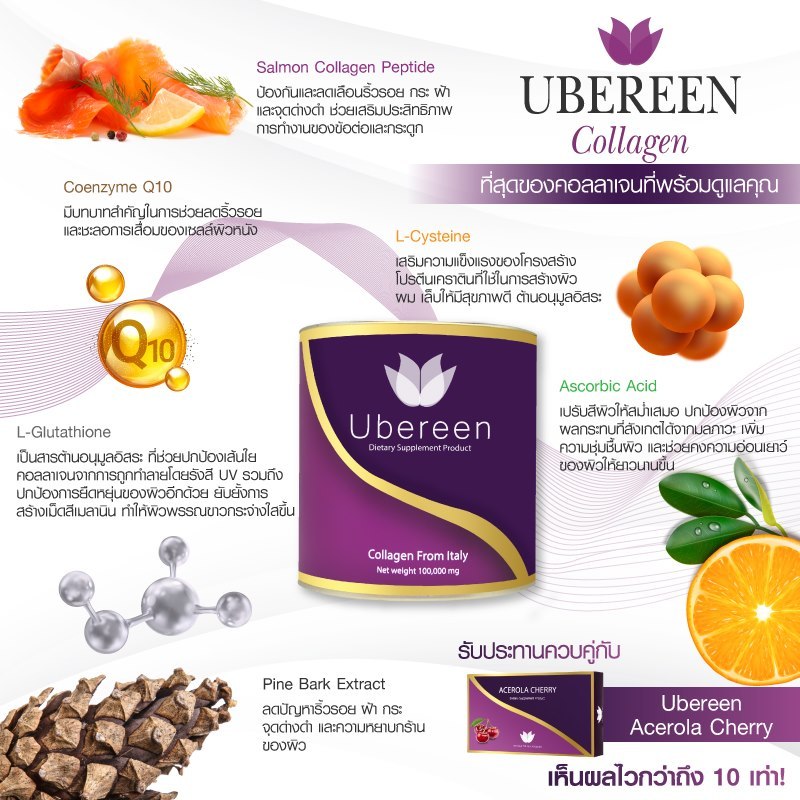 คอลลาเจน Ubereen2 กระปุก ที่มีส่วนผสมวิตามินซีกลูต้า คอลลาเจนเกรดpremuimมาตรฐานยุโรป ผิวสวยสุขภาพดี(ร้านของบริษัทโดยตรง)