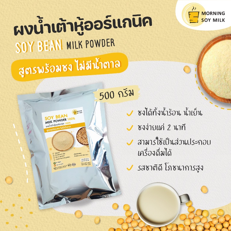 ผงน้ำเต้าหู้ สูตรพร้อมชง ไม่มีน้ำตาล 500g ถั่วเหลืองผง น้ำเต้าหู้ผง [ชงแล้วเหมือนน้ำเต้าหู้ต้มสด] ชงได้ 20แก้ว ออร์แกนิค