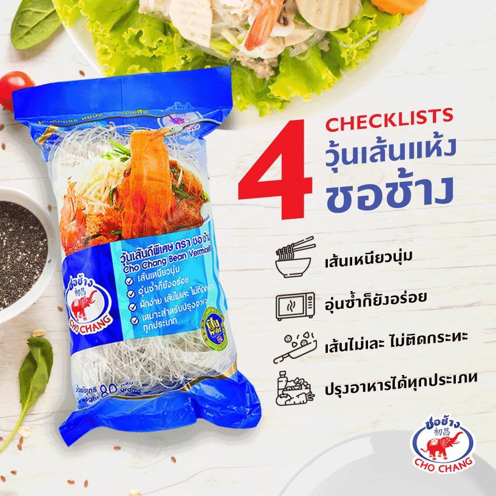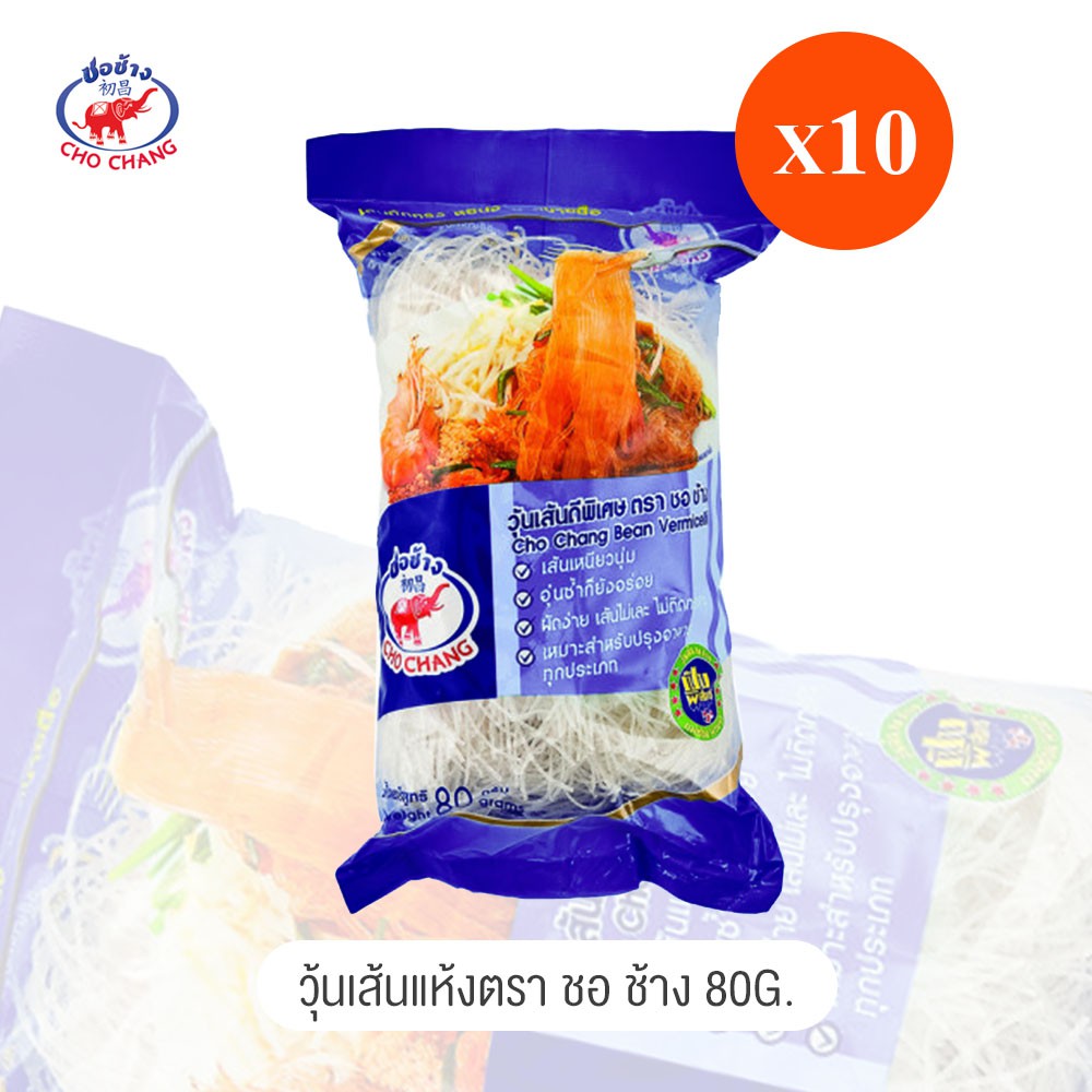 วุ้นเส้นเหนียวนุ่ม ตราชอช้าง ขนาด 80 กรัม (10ห่อ) วุ้นเส้นแห้ง ไม่เละ ไม่ติดกระทะ