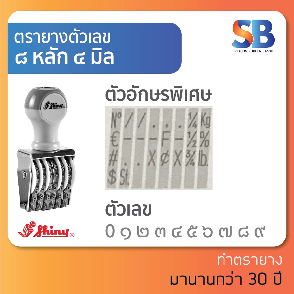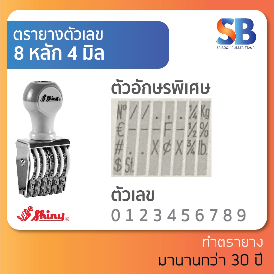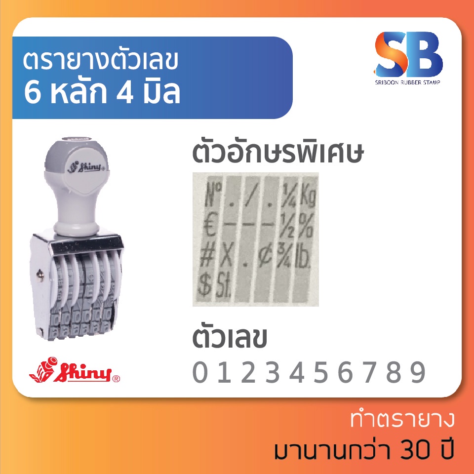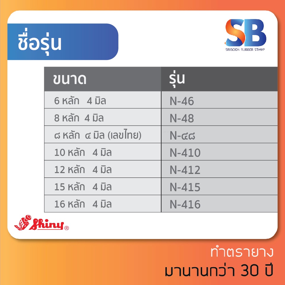 Shiny ตรายางตัวเลข สูง 4 mm มีเลขไทย! 6 8 10 12 15 16 หลัก), N-46 N-48 N-410 N-412 N-415 N-416 ออกใบกำกับภาษีได้!