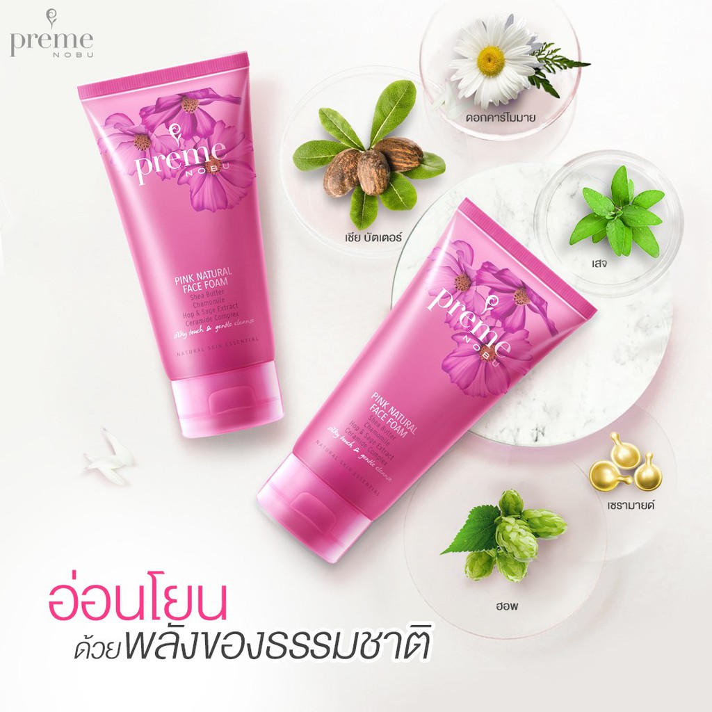 Preme Nobu Pink Natural Face Foam โฟมล้างหน้าพรีมโนบุ สูตรสำหรับผิวแพ้ง่าย 50g./100g.