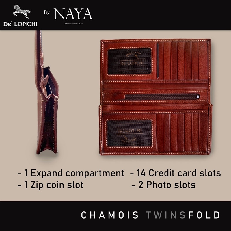 กระเป๋าสตางค์หนังแท้ สองพับยาว รุ่น Chamois Twinsfold หนังชามัว ใส่แบงค์พันได้โดยไม่ต้องพับ เนื้อนุ่ม หนังดูเป็นธรรมชาติ