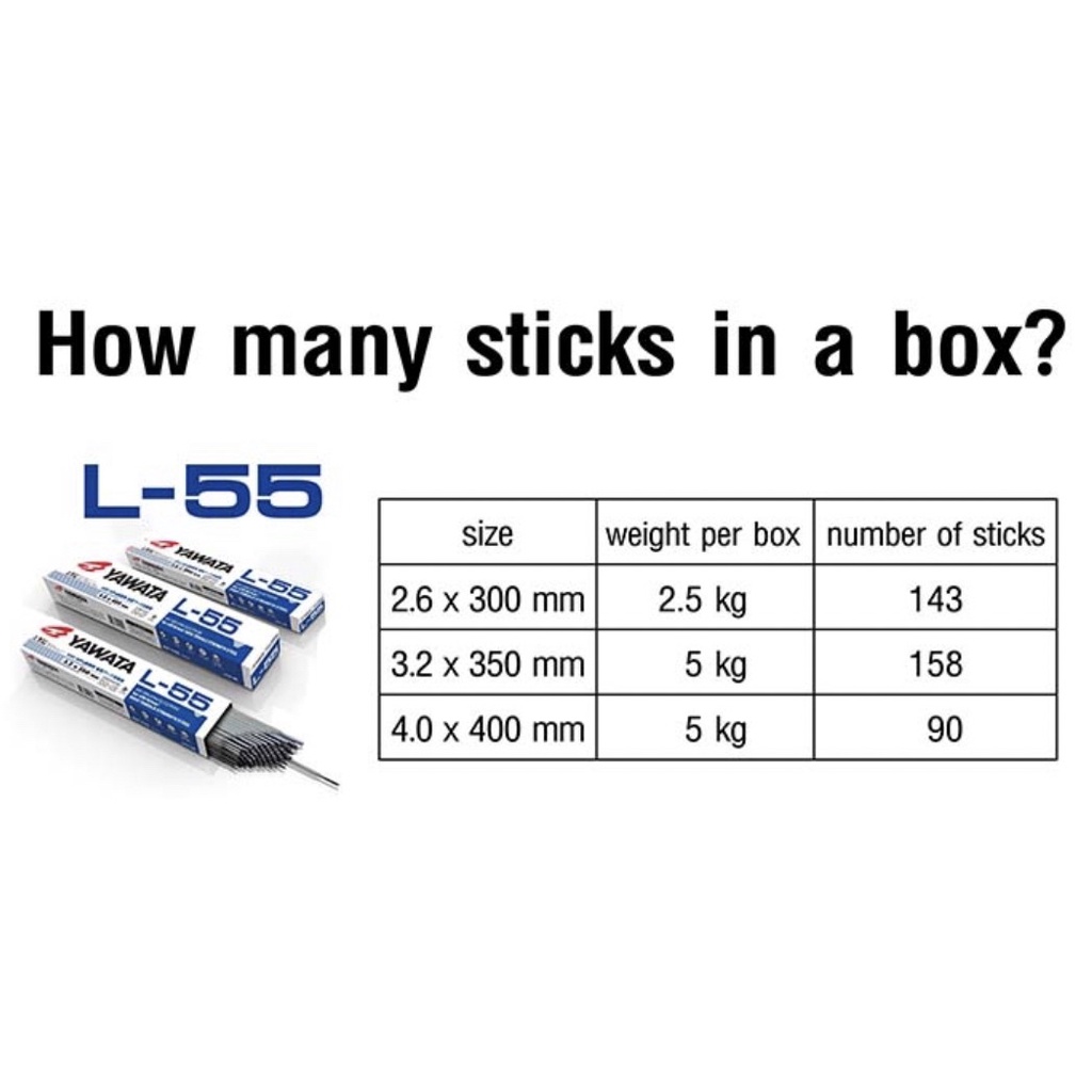 Yawata ลวดเชื่อม L-55 2.6,3.2,4มม. ขายเป็นห่อค่ะ