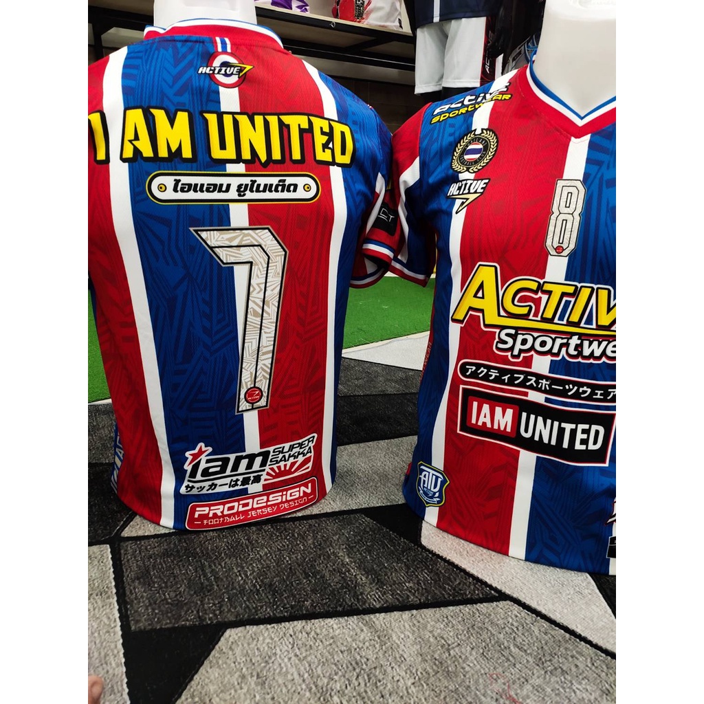 คอลเล็คชั่น ใหม่ล่าสุด💥 #เสื้อกีฬาชาย เสื้อบอล ผ้าเม็ดข้าวสารเกรดพรีเมี่ยม I AM UNITED (V.6RB น้ำเงิน-เเดง)