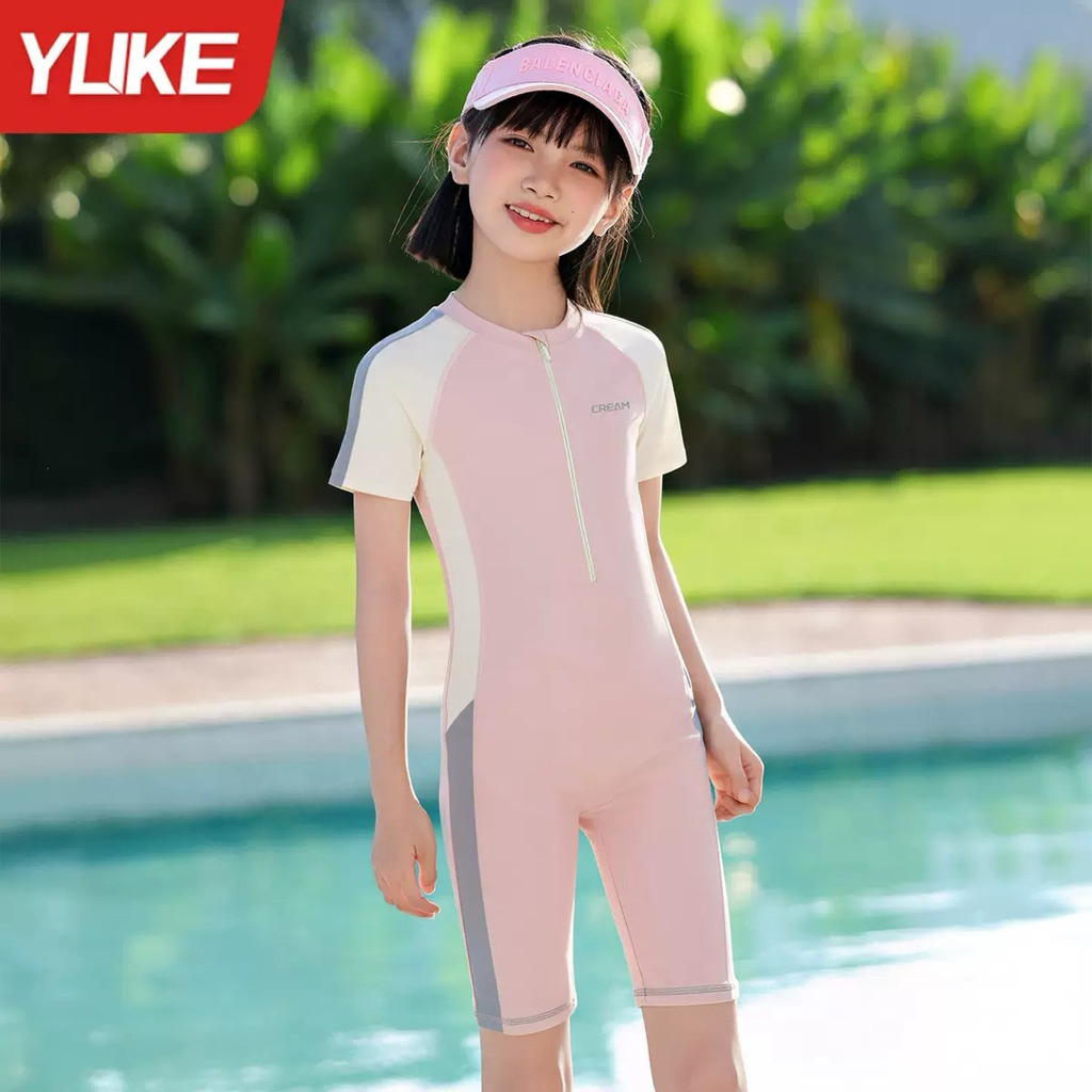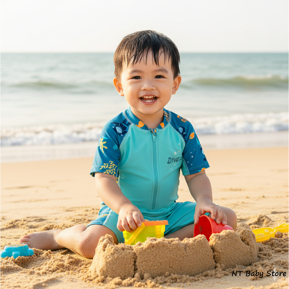 NT Baby - 080 (สินค้าพร้อมส่ง) ชุดว่ายน้ำเด็กแขนสั้นวันพีซ สีฟ้าทะเลสุดคิ้วท์ เกรดพรีเมี่ยม ผ้านุ่มใส่สบาย