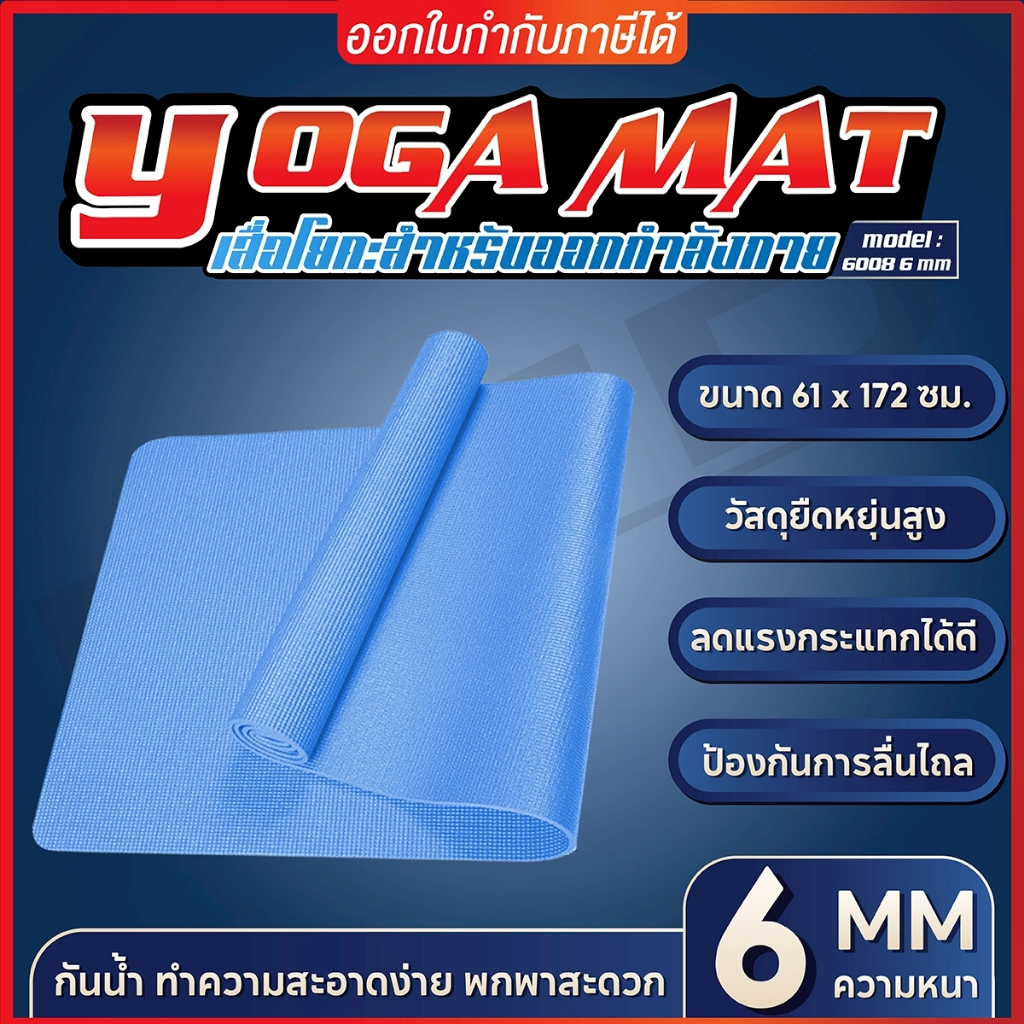 BG Yoga Mat เสื่อโยคะ หนา 4-6 mm. กันลื่น กันน้ำ ลดเสียงรบกวน TPE+TC มีหลายสีให้เลือก รุ่น 6008