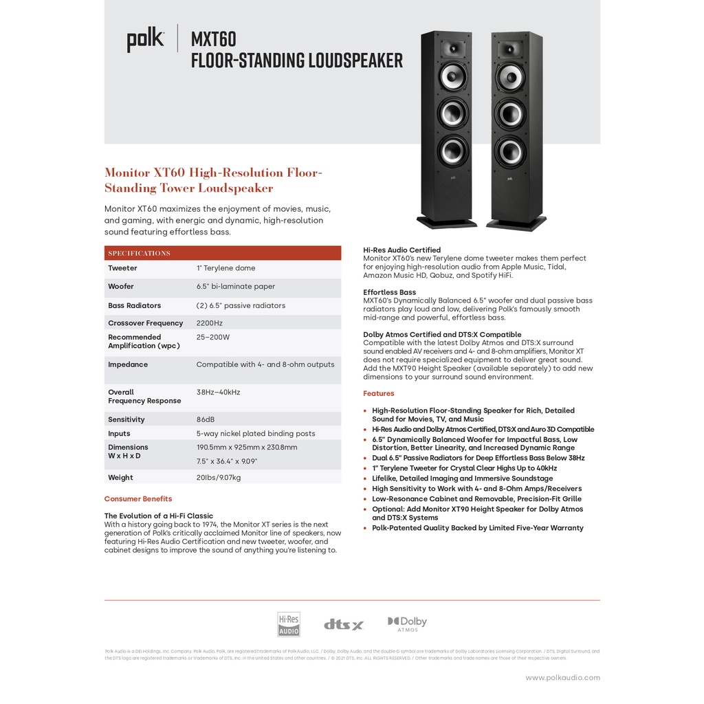 POLK MONITOR XT60 HIGH-RESOLUTION FLOOR-STANDING LOUDSPEAKER