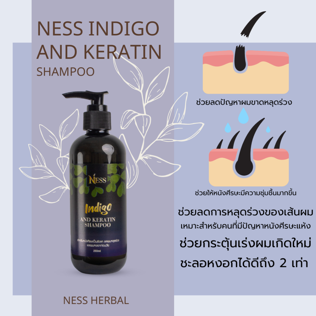 (แพ็คคู่ สุดคุ้ม) แชมพูสูตรใบคราม Ness🍃สูตรเข้มข้น ลดผมหงอกกระตุ้นเส้นผมดกดำ ลดปัญหาผมร่วงผมมัน คันรังแค💜🍃250 ml