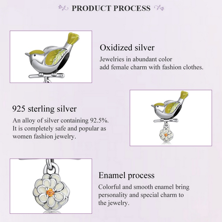 Bamoer ลูกปัดเงิน 925 รูปดอกไม้ นก เครื่องประดับแฟชั่น สําหรับสร้อยข้อมือ Diy SCC2191