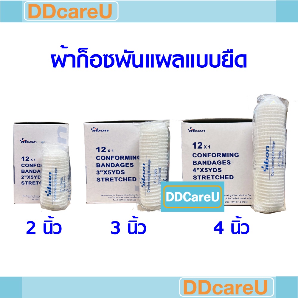 ผ้าก็อซม้วนแบบยืด ขนาด 2 นิ้ว/ 3 นิ้ว/ 4 นิ้ว x5 หลา conform bandage 2"/ 3"/ 4" YIBON ผ้าก๊อซม้วน ผ้าก๊อซยืด ผ้าพันแผลแบ