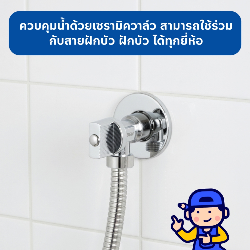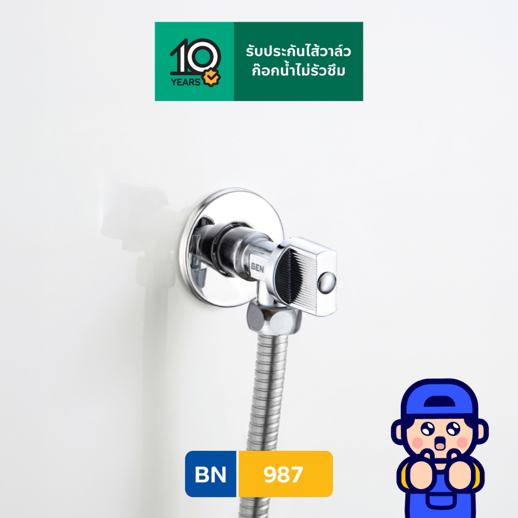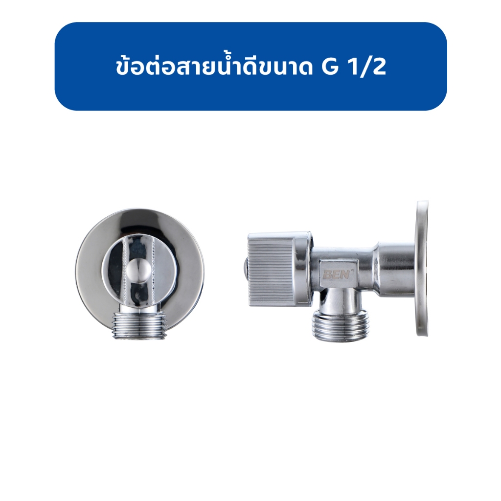 BEN 987 สต็อปวาล์ว 1/2x1/2 นิ้ว ด้ามแบน สำหรับเปิด-ปิดน้ำ ใช้กับสายชะระ อ่างล้างหน้า