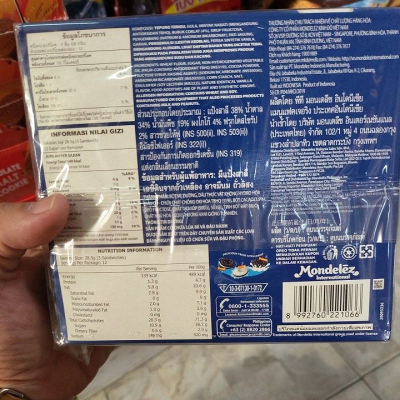 โอรีโอ คุกกี้แซนวิชรสช็อกโกแลต สอดไส้ครีมวานิลลา 28.5 ก. แพ็ค 12
