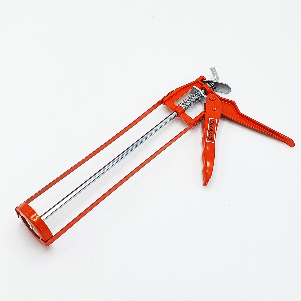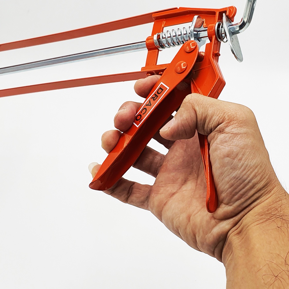 DRACO ปืนยิงกาว ซิลิโคน แกนคู่ อย่างดี ก้านเหล็กหนา สีส้ม ปืนยิงซิลิโคน ปืนยิงกาวซิลิโคน ทรงกระบอก แบบเปลือย