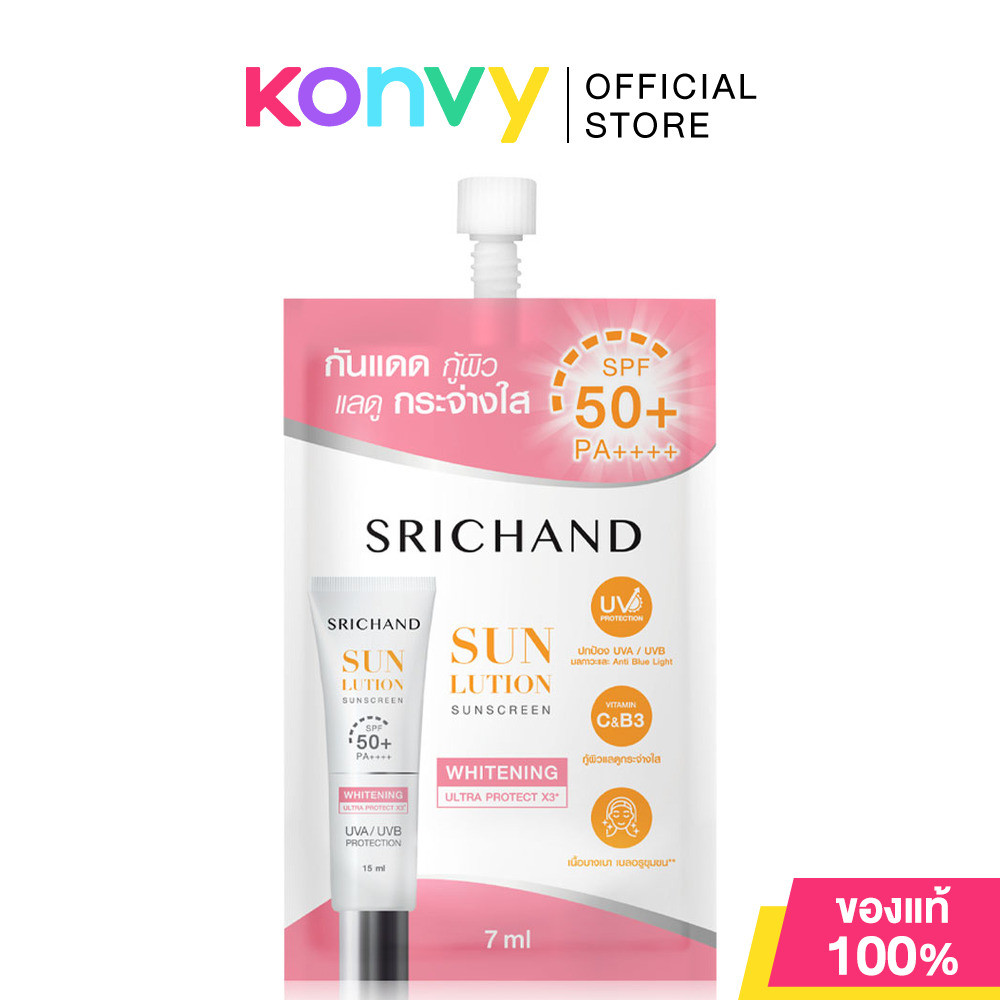 Srichand Sunlution Sunscreen SPF50+ PA++++ 7ml sachet ศรีจันทร์ กันแดดแบบซอง (Acne Care/Skin Whitening)