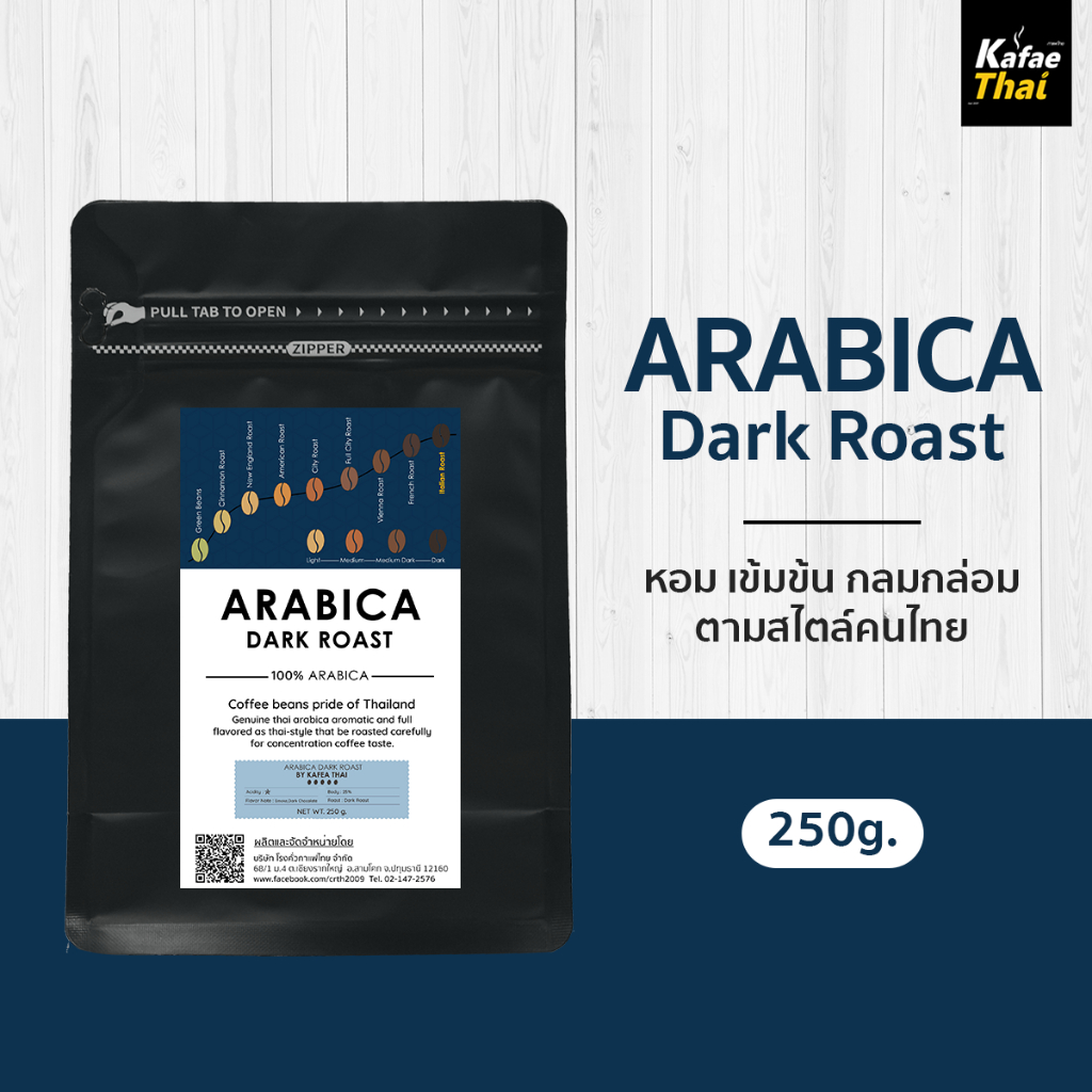 [ส่งฟรี] เมล็ดกาเเฟคั่ว Arabica Dark Roast เมล็ดกาแฟ อาราบิก้า 100% คั่วเข้ม หอม เข้มสะใจ ขนาด 250 g
