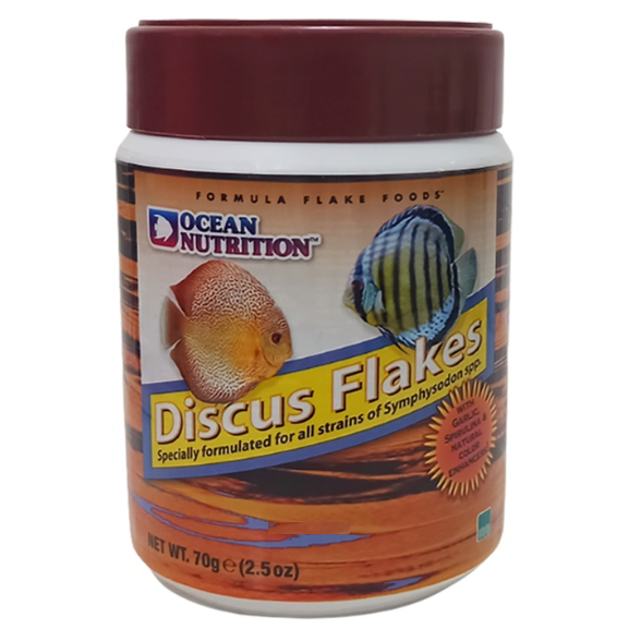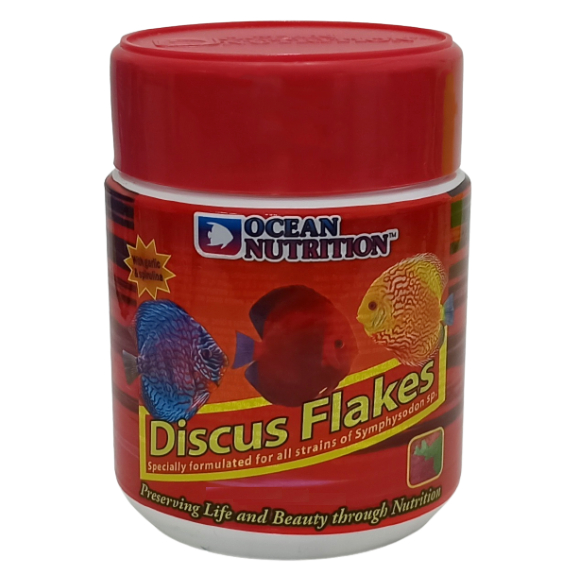 อาหารปลา ปลาปอมปาดัวร์ ชนิดแผ่นจมน้ำ สูตรสมดุลย์ Discus Flake Ocean Nutrition 34g. และ 71g.