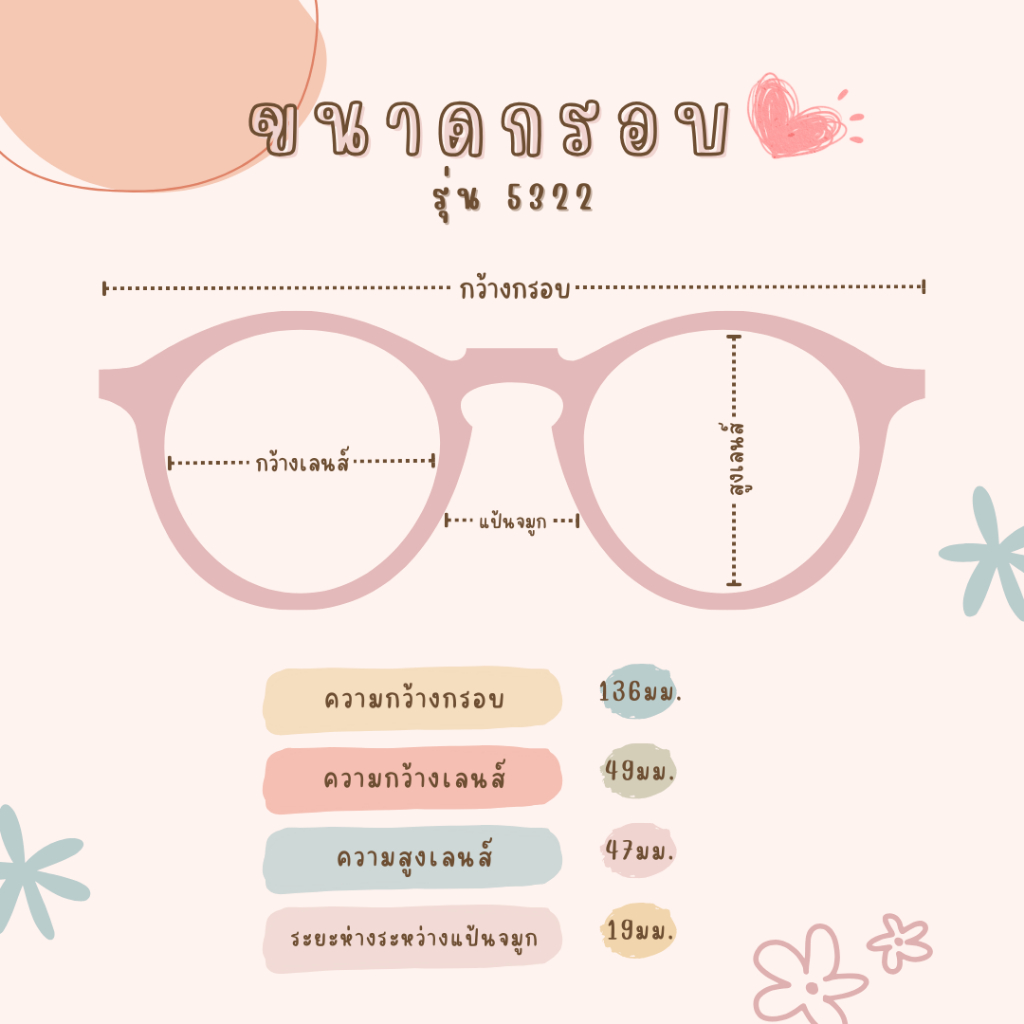 แว่นตา เลนส์ตัดใหม่สไตร์เกาหลี แว่นสายตาสั้นผู้หญิง แว่นกรองแสงคอม (รุ่น B-5322)