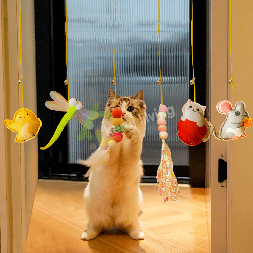 Harmcat กระดิ่งแขวนประตู ของเล่นกระดิ่งเเมว ของเล่นเชือกแขวนประตู ยืดหดได้ สําหรับสัตว์เลี้ยง แมว เชือกล่อเเมว มี 6 เเบบ