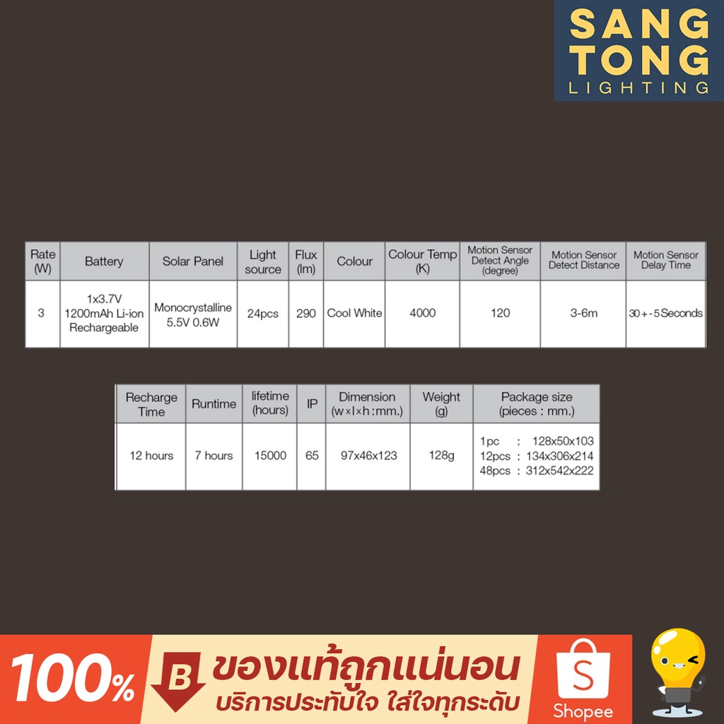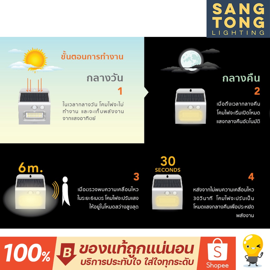 Lamptan ไฟผนัง Solar cell 3w โคมไฟพลังงานแสงอาทิตย์พร้อมเซ็นเซอร์จับความสว่างและความเคลื่อนไหว LUNAR