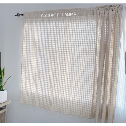 ผ้าม่านผ้าฝ้ายสไตล์มินิมอล ผ้าลายตารางดั้งเดิม สีธรรมชาติ ขนาด110x150cm คลาสสิค สวยงาม ให้ความดิบ และเอิทโทนมาก TTSN150