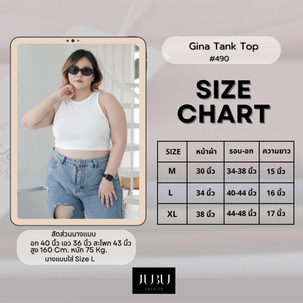 Gina Tank Top(ไม่มีฟองน้ำ) เสื้อกล้ามครอป เสื้อสาวอวบ ผ้าร่อง พร้อมส่ง #490