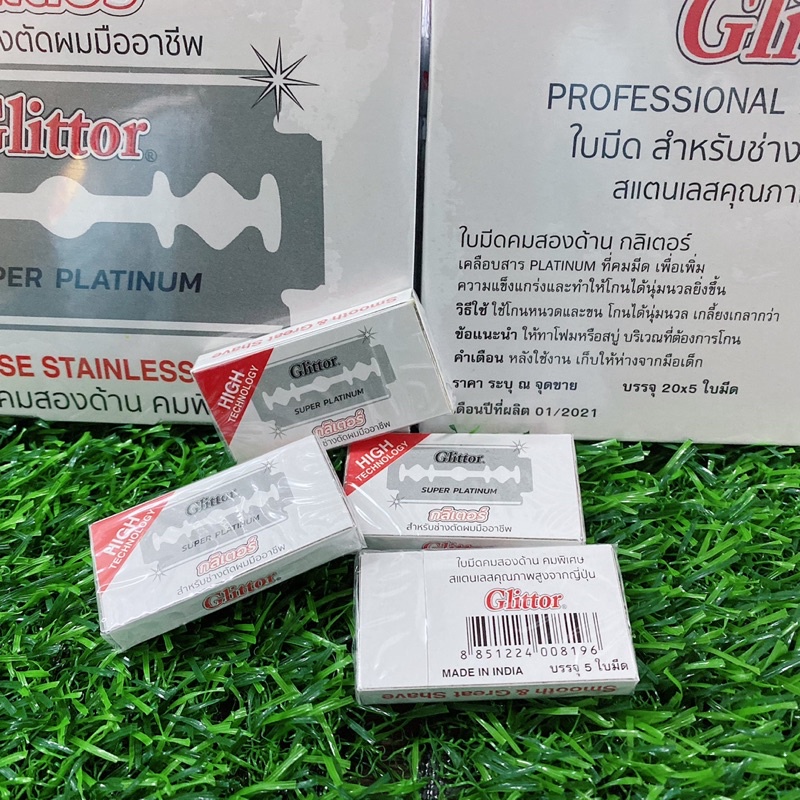 ใบมีด Glittor ใบมีดคมสองด้าน (ยกกล่อง 100 ใบ)