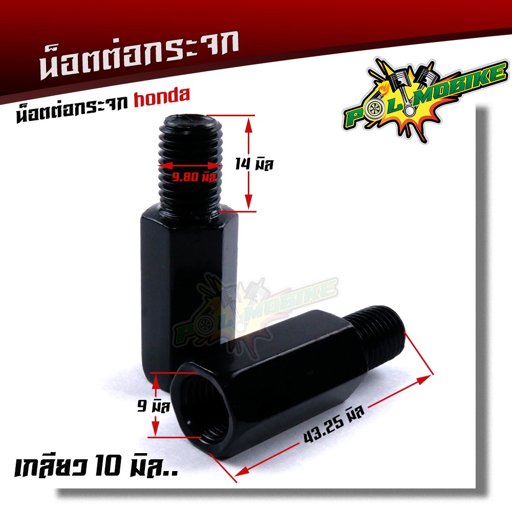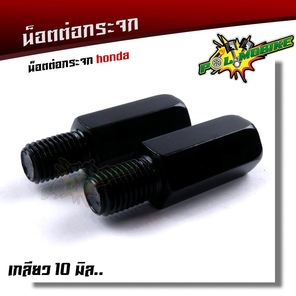 น็อตต่อกระจก ฮอนด้า(ราคา2ตัว) งานเหล็กชุบดำ เกลียว 10มิล สำหรับรถแต่งกระจก เพิ่มความสูง 2.89ซม. เกลียว ขวา+ขวา งานแข็งแร