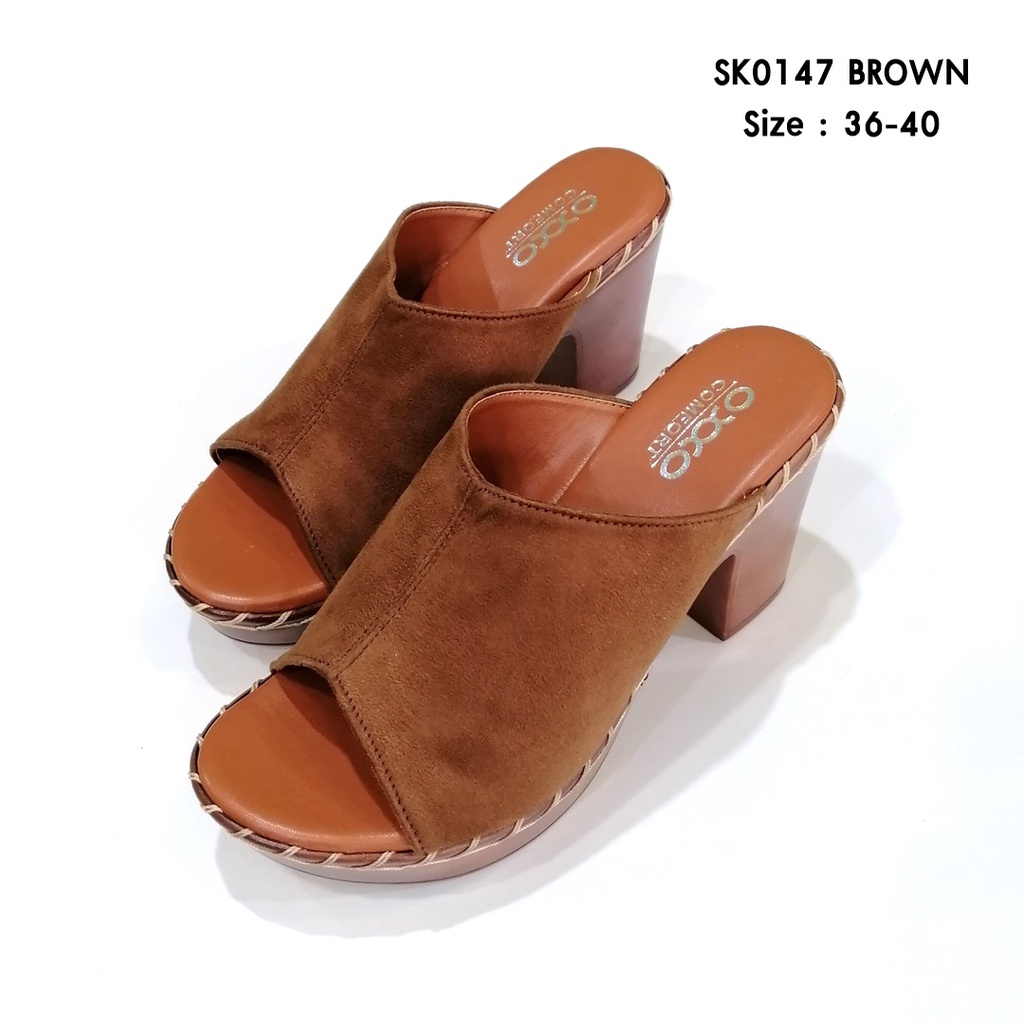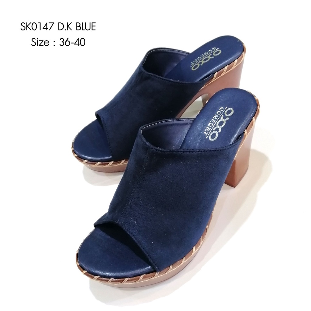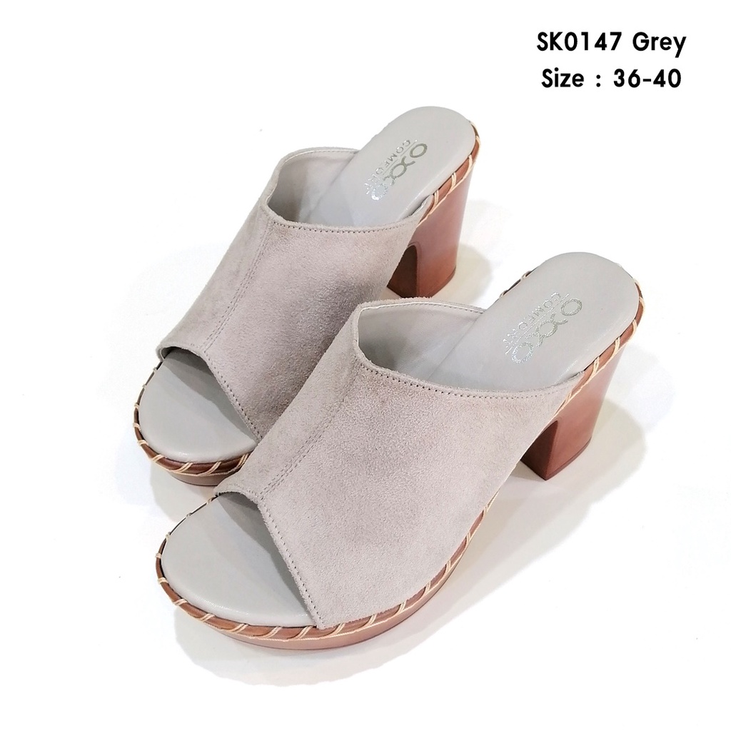 Prettycomfort รองเท้าส้นสูง แตะ เพื่อสุขภาพ แฟชั่น หนังกำมะหยี่ ส้นพียูเย็บเชือก สูง3.5นิ้ว SK0147